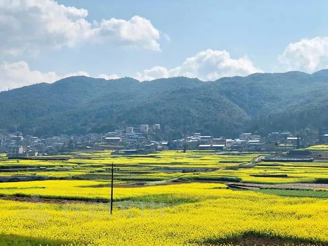 #你家乡的春天来了么# “春风如醇酒,著物物不知 ”。非常文山发来的一则消息:“平坝镇第二届油菜花美食节欢迎您”,让我们猛然发现春天回来了。金灿灿的油菜花开了,意味着温暖的阳光将再次照耀在我们的身上,也预示着一年四季中最美好的时光即将来临。过了一个四季的轮回,首届活动的情景还历历在目。2023年2月3日上午10点文山市平坝镇首届油菜花美食节在平坝镇平地村露营基地正式拉开帷幕,花团锦簇,游客成群,油菜花田热闹非凡。走进平坝镇平地村,500余亩连片油菜尽情绽放,流金四溢,绵延数里。微风徐徐吹来,浩瀚花海翻起金色波浪,空气中弥漫着淡淡的菜花清香。三五成群的游客流连在油菜花丛中,摆出各种姿势拍照留影,油菜花海里不时传来阵阵欢声笑语。徜徉在美丽绚烂的花海中,游客、村居、远山逐渐融为一体,构成一幅美丽的乡村画卷。