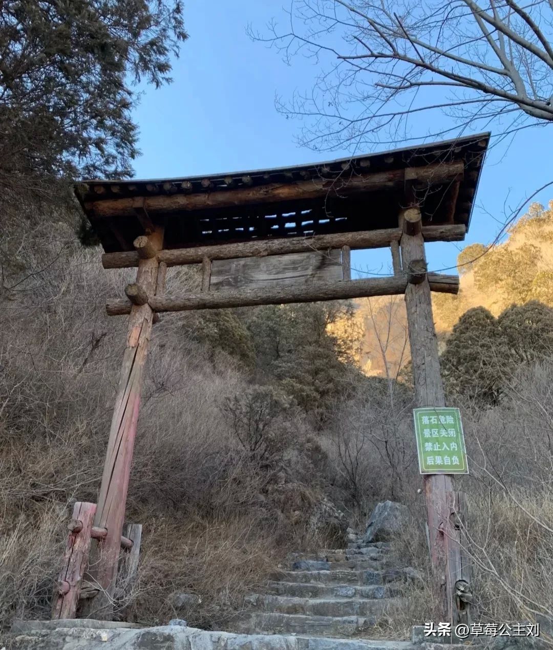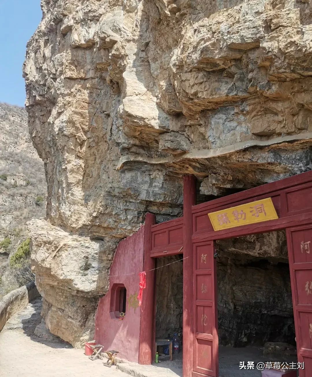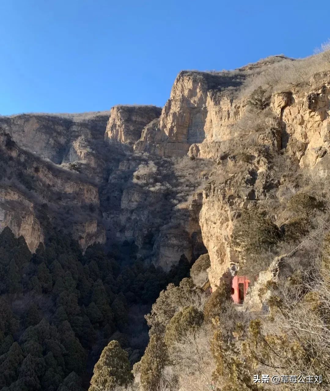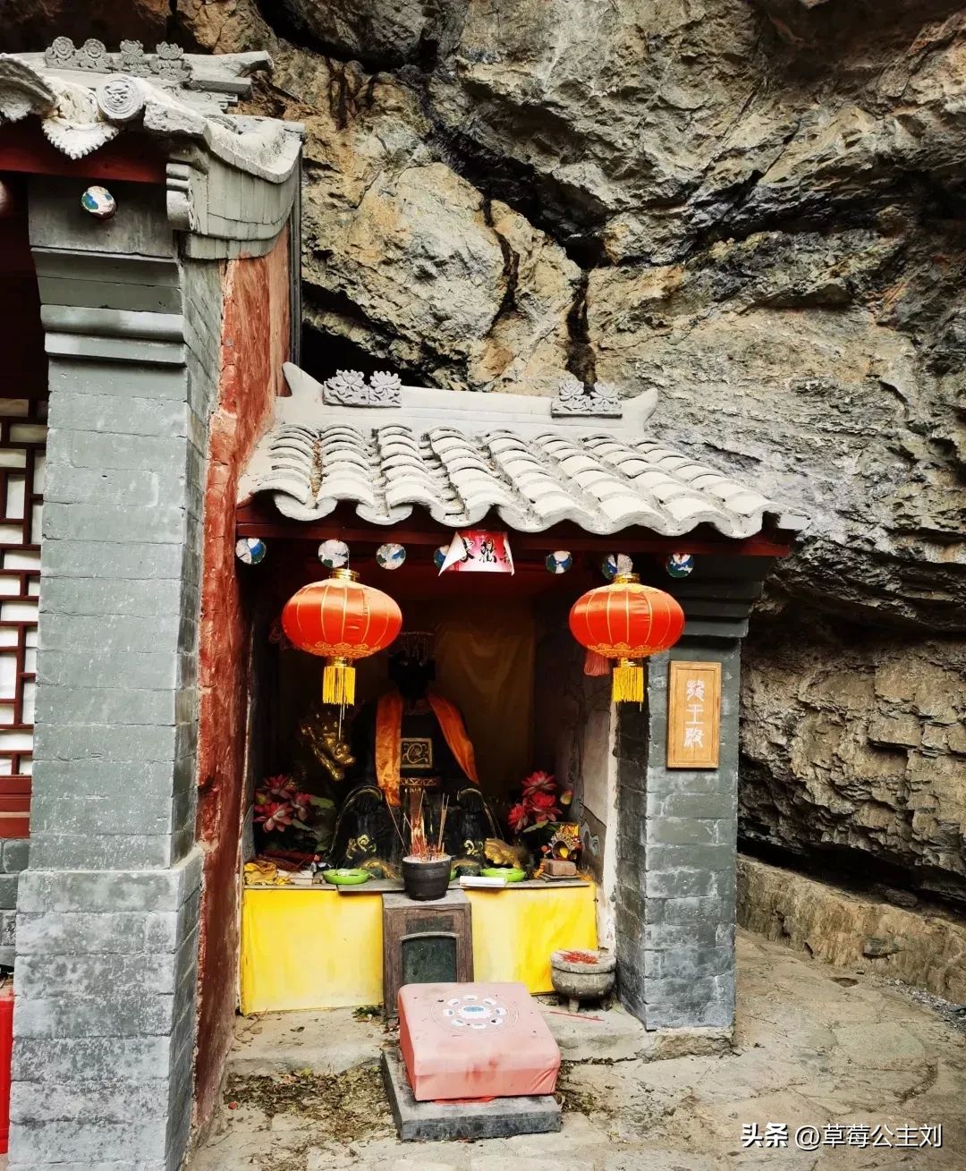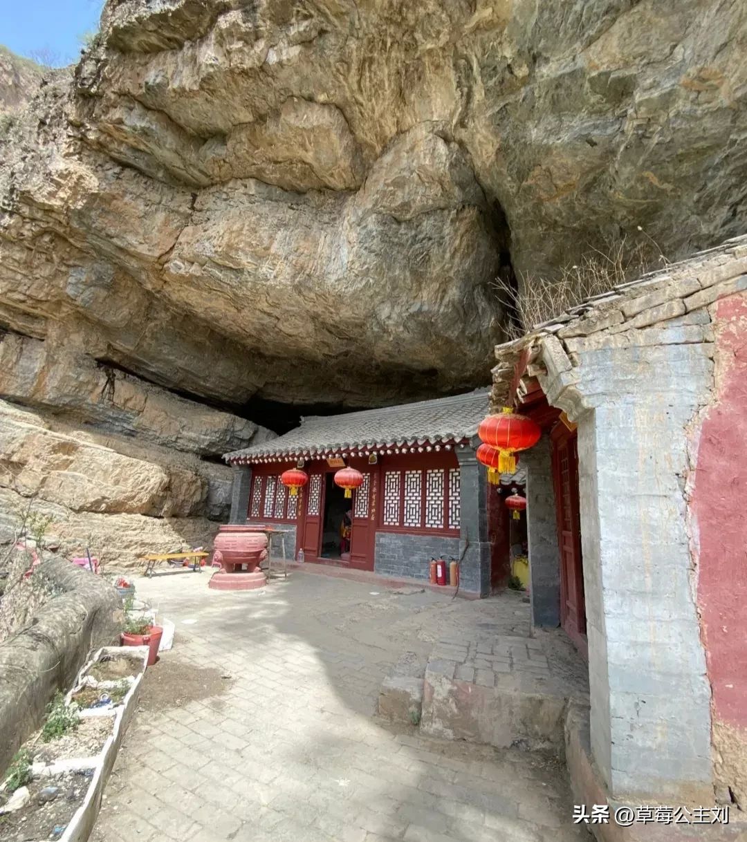 绕过神泉后,就是个巨大的石台,这里被称为“京西悬空寺”。往里走,就可以看到这个娘娘庙和龙王庙以及张仙殿啦。其实这小悬空寺原名张仙洞,张仙是这里的主要神位,被奉为送子男神,相传此地为张仙炼丹之处。但令人疑惑的是,张仙殿为何如此简陋狭小。由张仙殿东行,可见一石窟,此石窟为弥勒殿,弥勒殿无门无窗,或说是有框无门扇。是修复时资金不足,时间仓促?之后从弥勒殿东行,有一木质凉亭,从凉亭处回望弥勒殿,方感觉悬空之意。如果您体力充沛,过了凉亭后,可以顺延弯曲的小路接着爬,就能到山顶了。