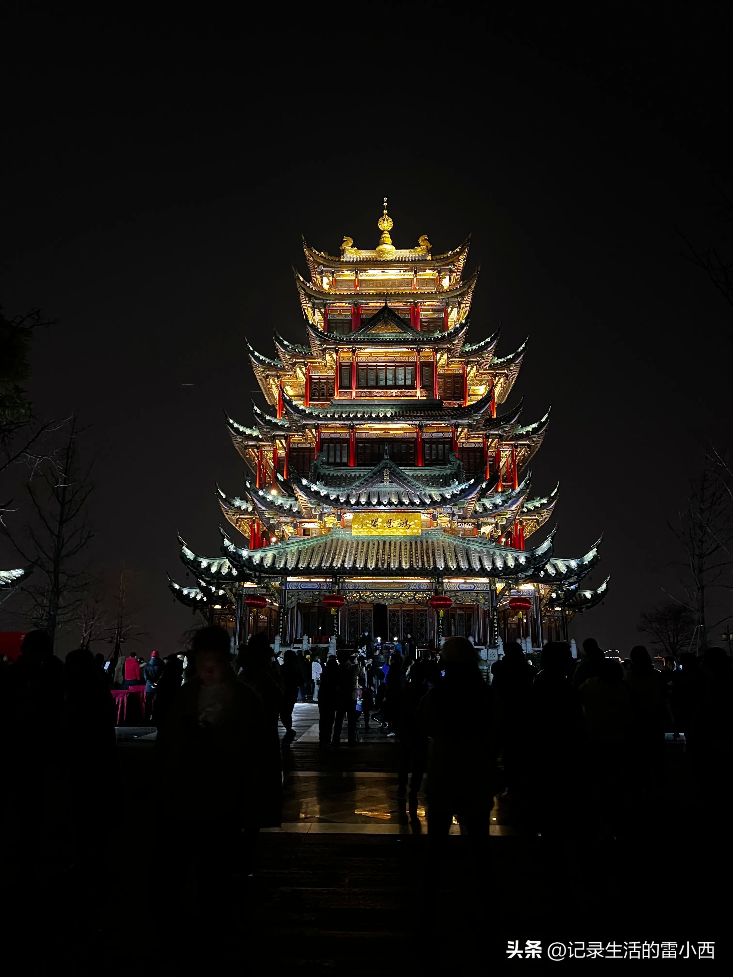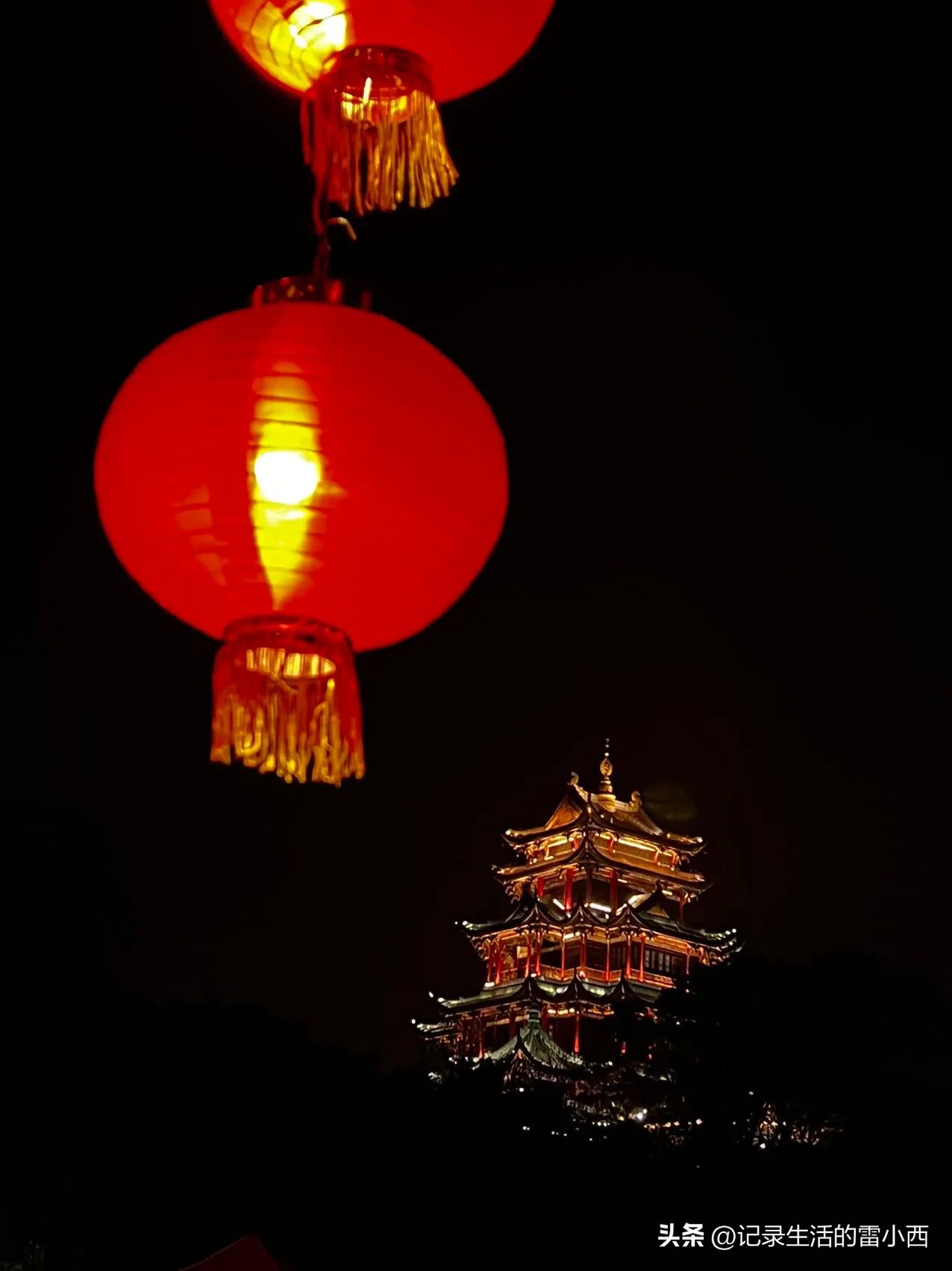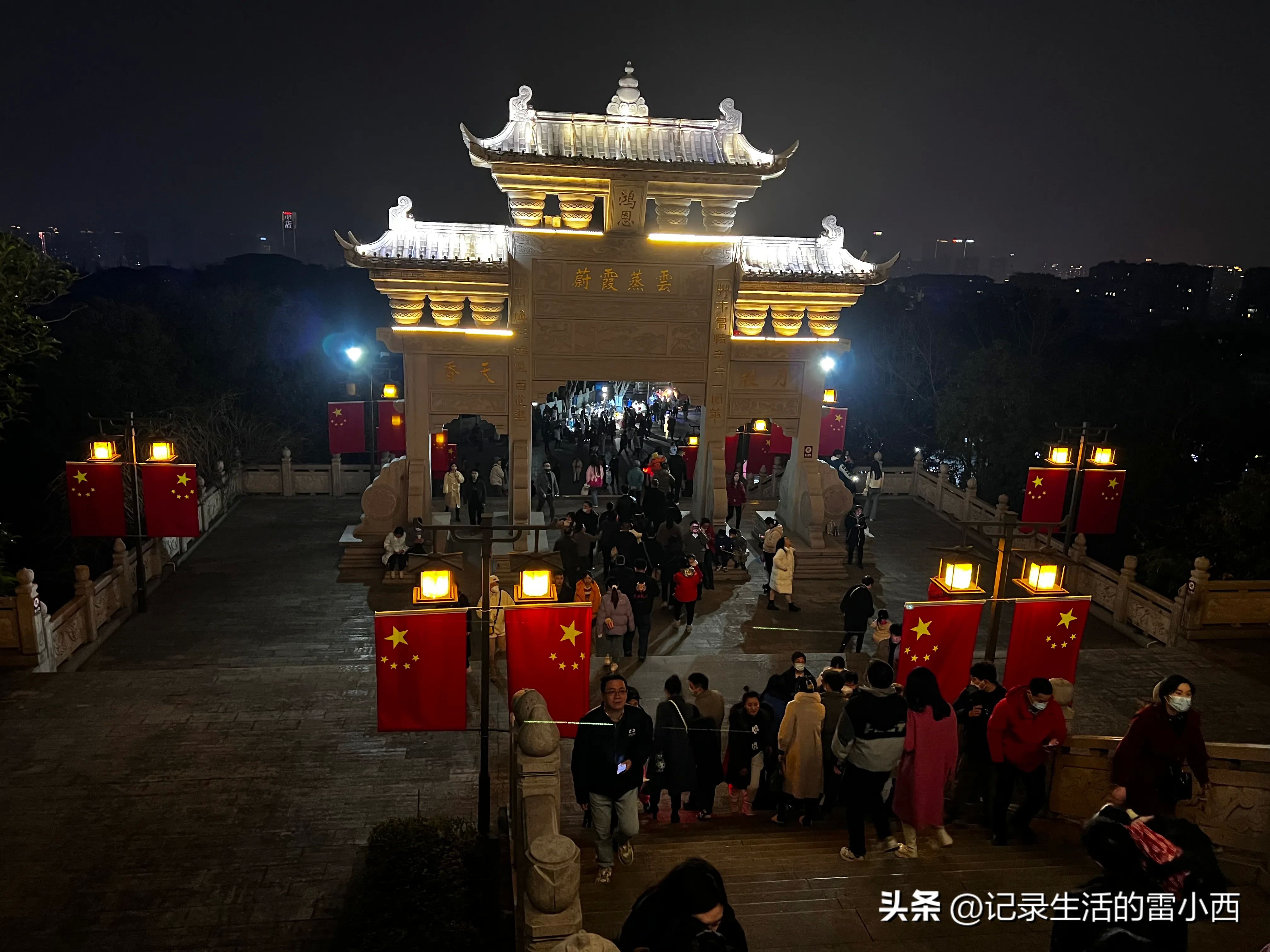 2、除了大红灯笼组成的千灯长廊,再就是“到了鸿恩寺公园,必游鸿恩阁”,夜晚的鸿恩阁点亮山城夜空,可谓是主城夜晚最美的阁楼!