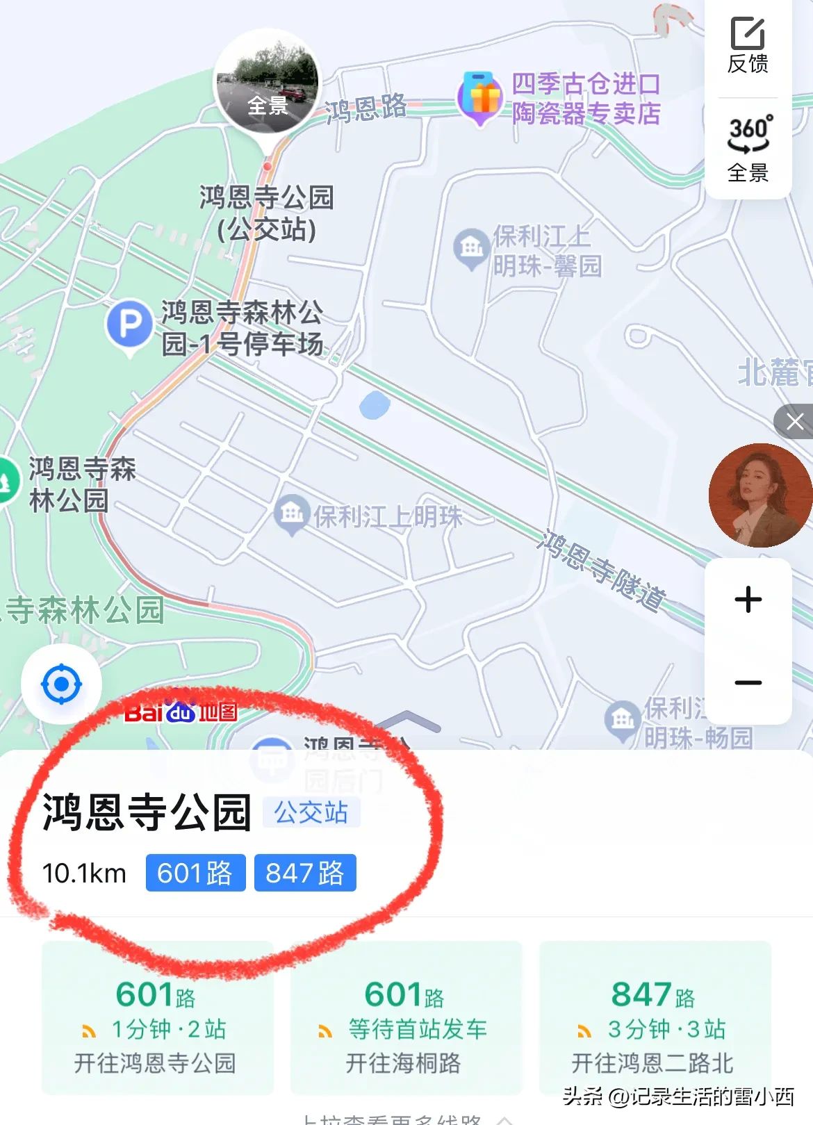 4、前往鸿恩寺公园的朋友,可以直接定位“鸿恩寺公园东二门”,乘坐公交车的朋友,可以乘坐轨道6号线至“红旗河沟站”后,再换乘公交601路至“鸿恩寺公园站”下车。