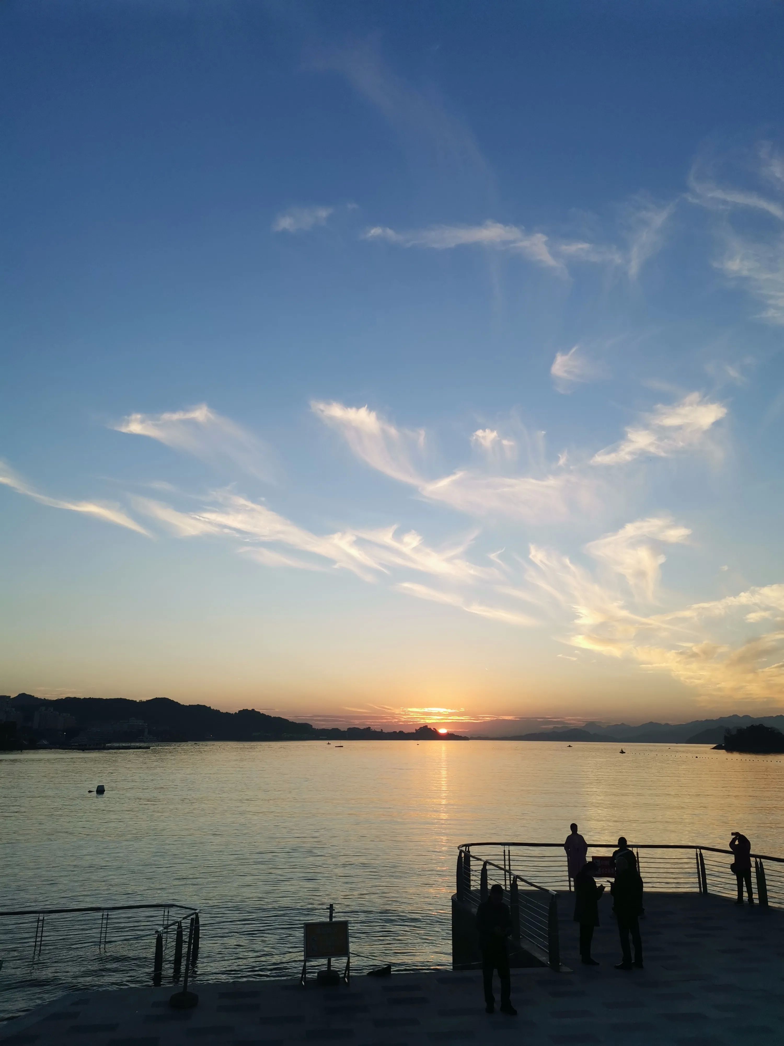 去了秀水广场,看到了落日,真切感受到了“一道残阳铺水中,半江瑟瑟半江红”