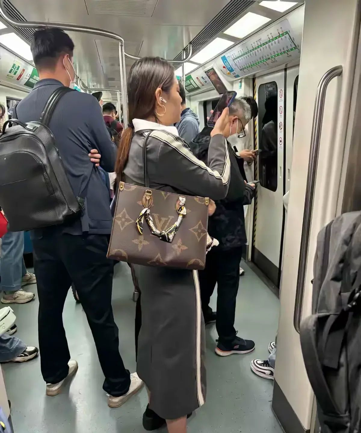 周围的乘客不断把视线投向那个深褐色包包,鲜明的奢侈品标志和严密的丝带包裹不容忽视。一些人相互低语,猜测包包的真实价格是否如传闻般高昂。即使是地铁旁的乘务员,也不禁多看了几眼。对于寻常人而言,这样一个包所代表的不是时尚,而是令人望而却步的消费门槛——好几年的积蓄才能换来其身价。