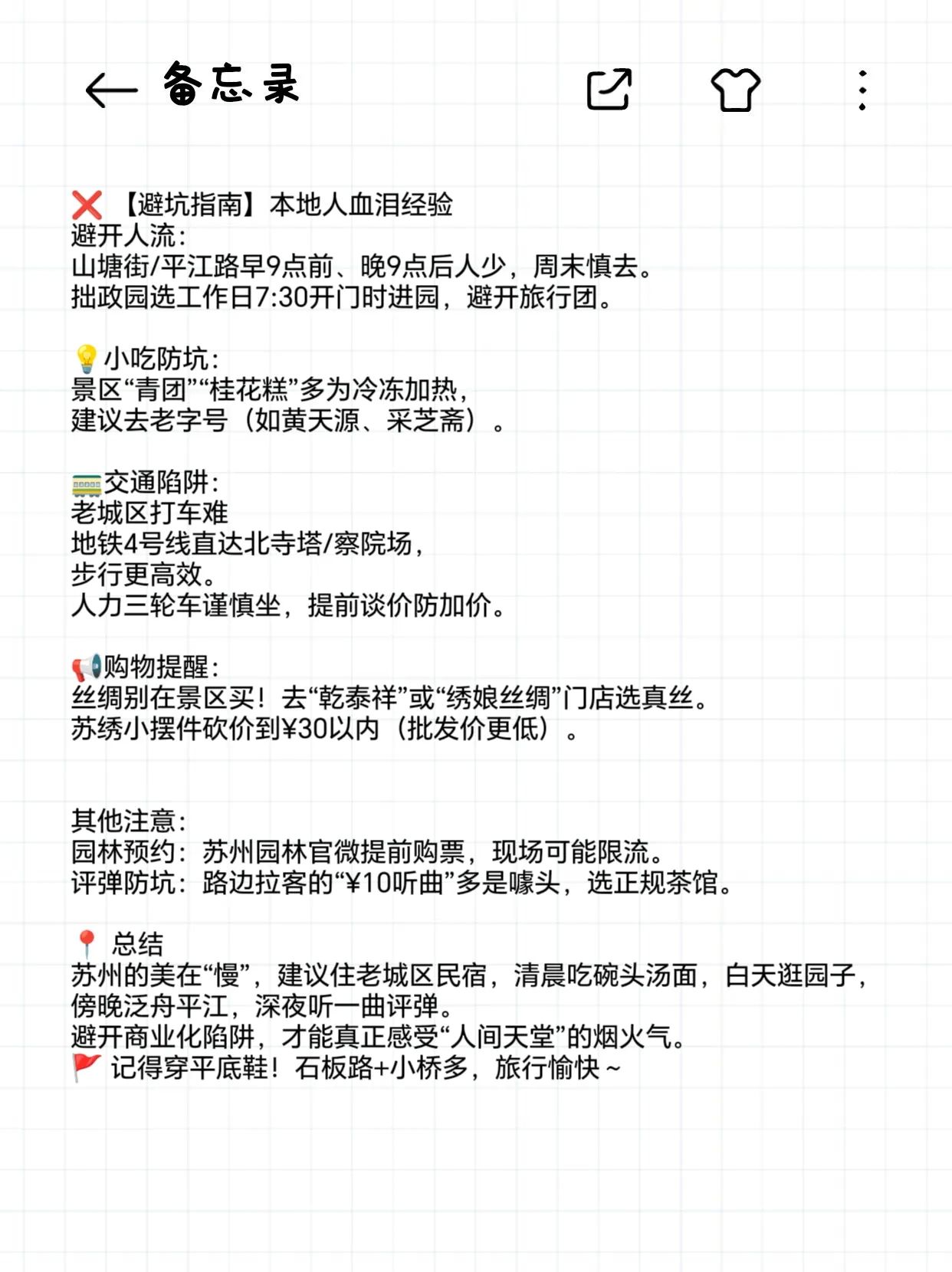 宝子们,苏州真的超美,江南水乡的韵味十足,但是来苏州旅游有些注意事项可得提前知晓,这样才能玩得开心又顺畅,赶紧码住吧!