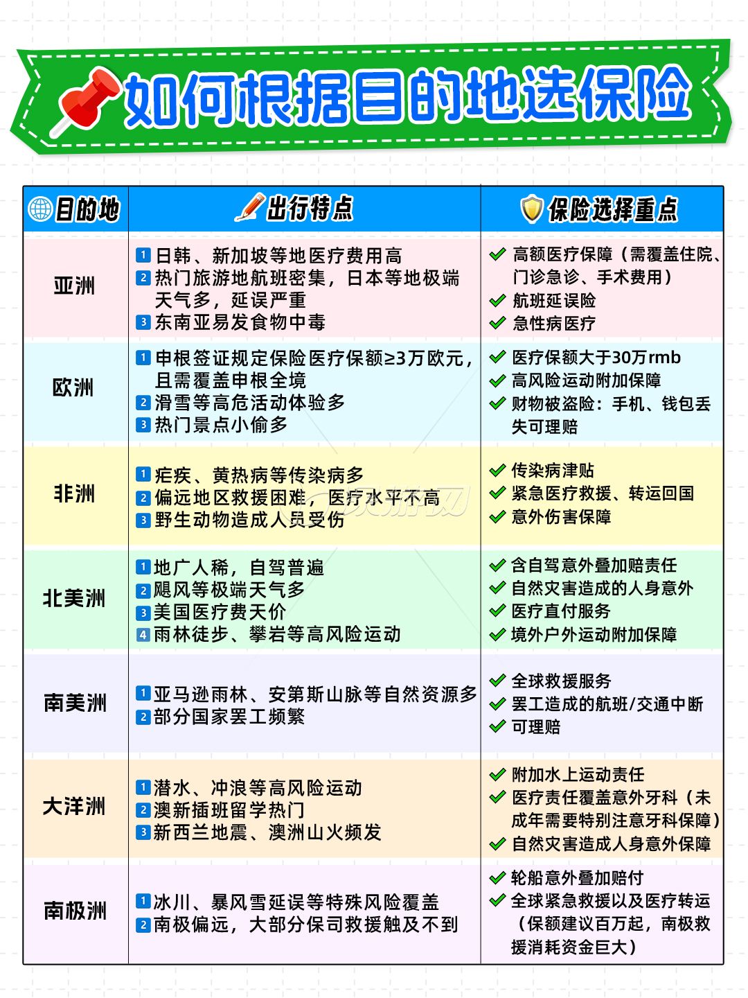 今天这篇笔记,按七大洲特点总结投保攻略,3张内页直接抄作业!