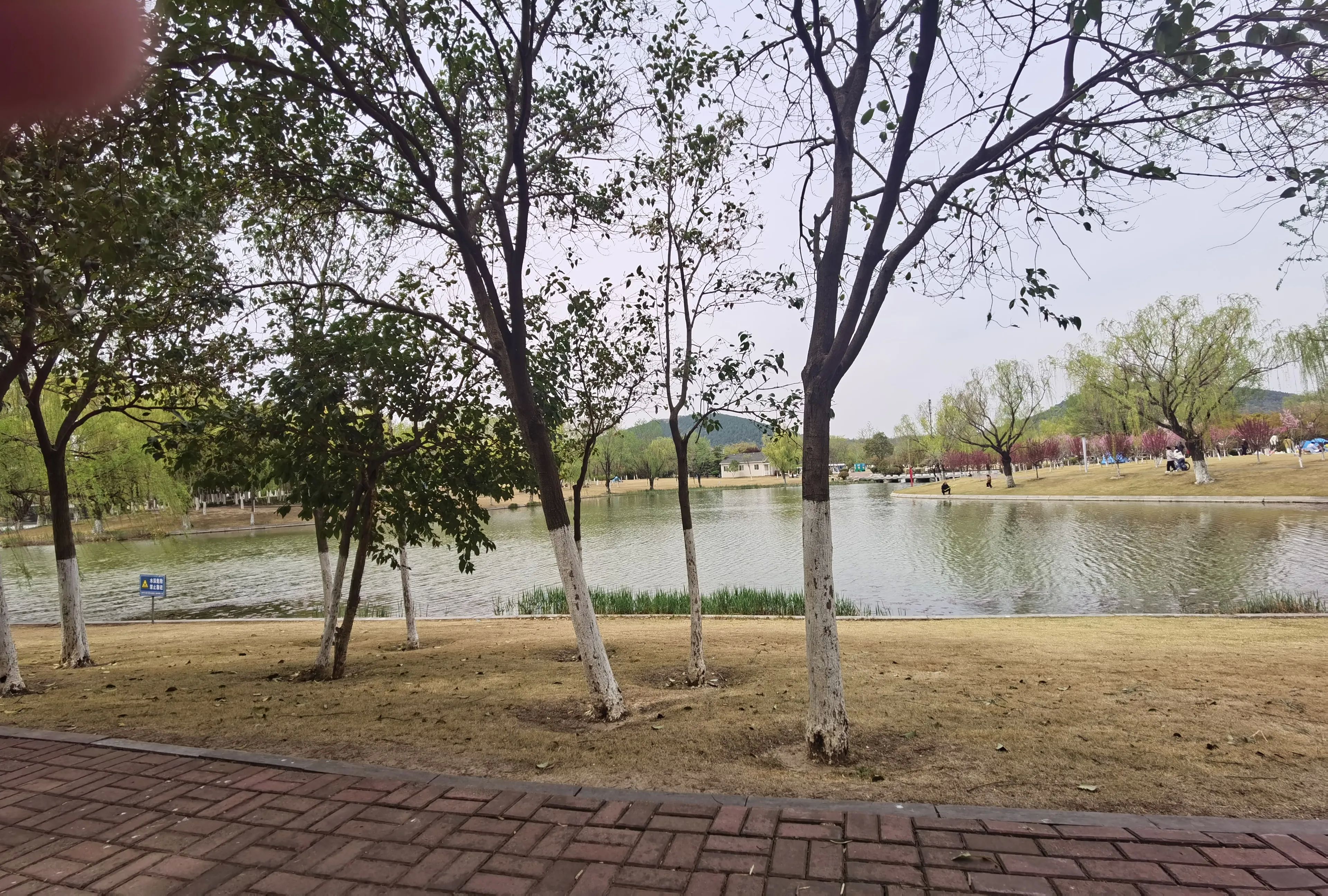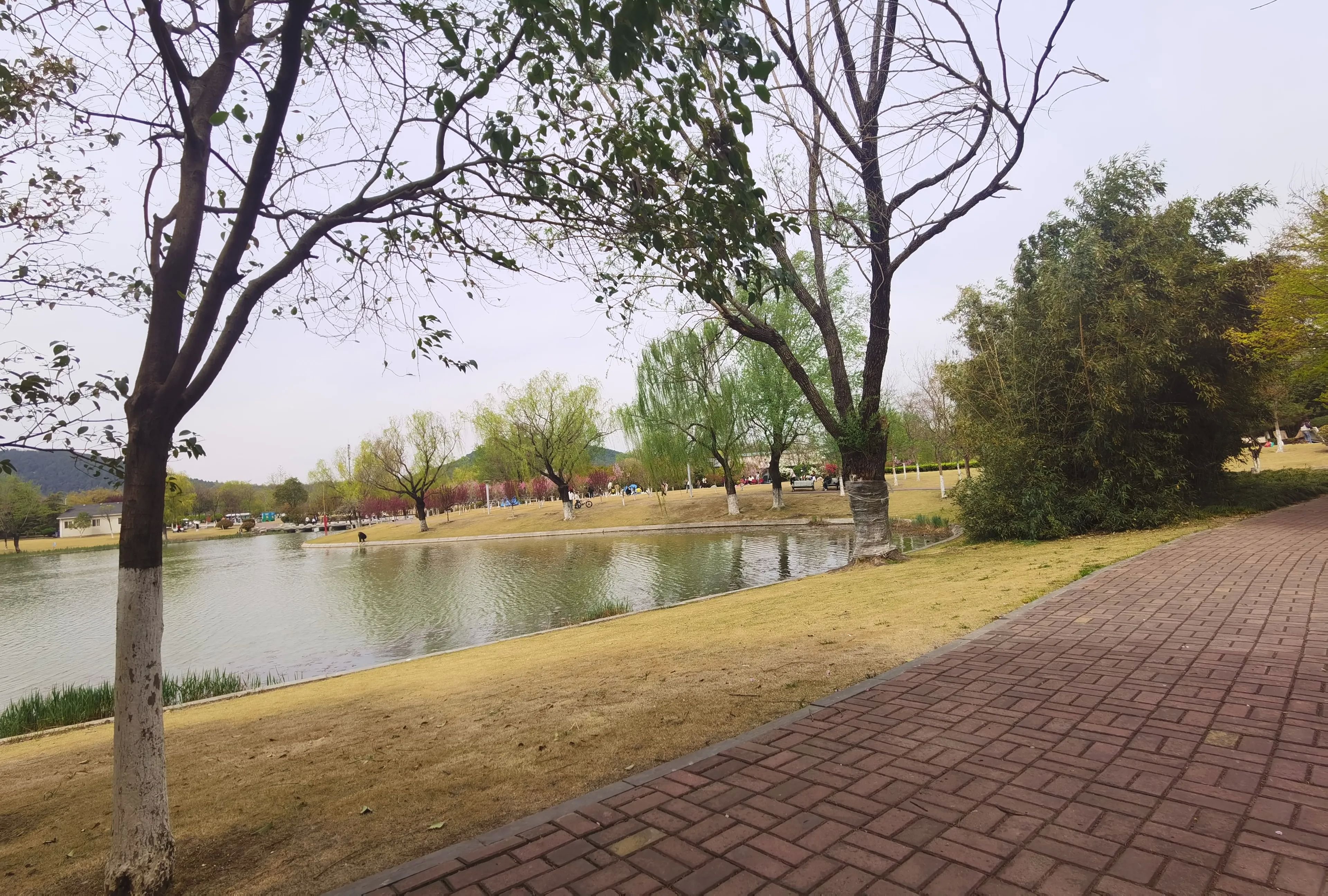 它到处铺满草坪,草坪上栽种的不是一般的观赏性的花木,而是很多碗口粗高大的乔木。沿湖边栽种的垂柳甚至两个人抱不过来。