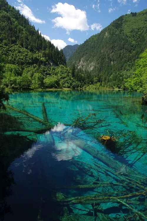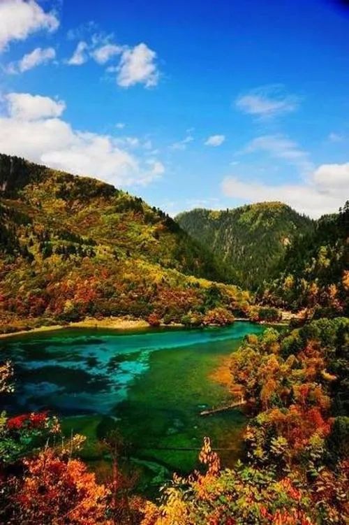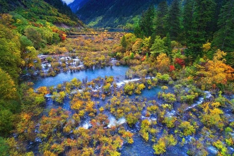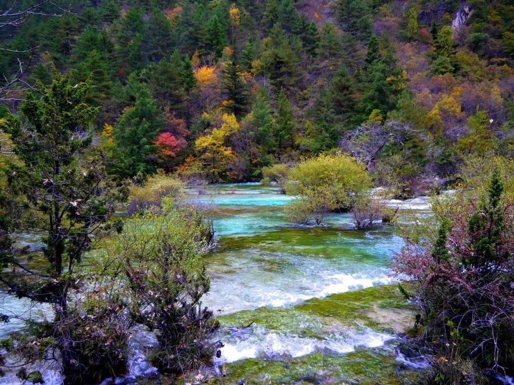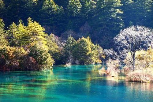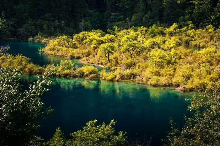 九寨萋萋芳草海,潺潺细水冷泉稠。