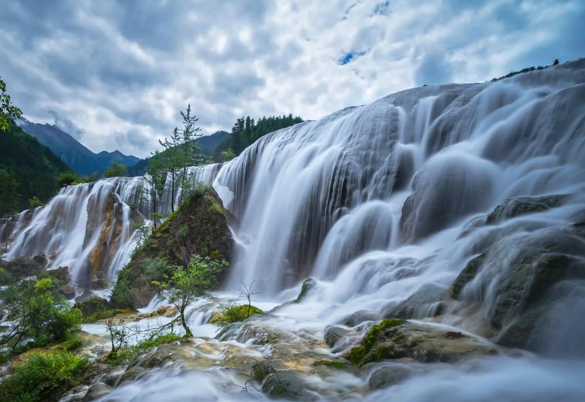 注释:树正寨瀑布水中有水磨房,岸上有树正寨商品一条街。