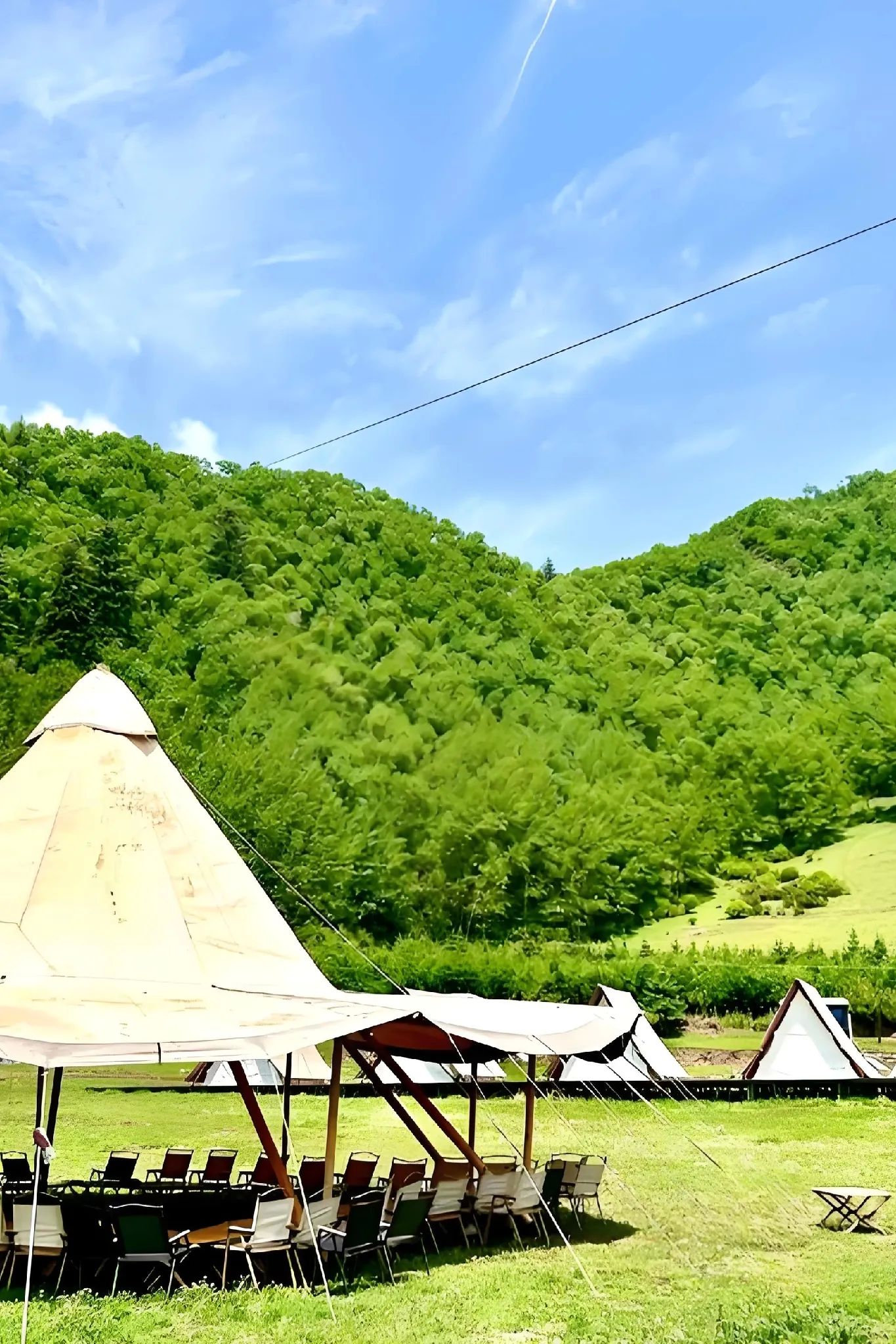 超大露营基地配备了专业帐篷和烧烤设备,夜晚躺在帐篷里,抬头就是璀璨的星空。景区还贴心准备了篝火晚会,围着篝火听藏族同胞唱"花儿",这种体验别处难求!