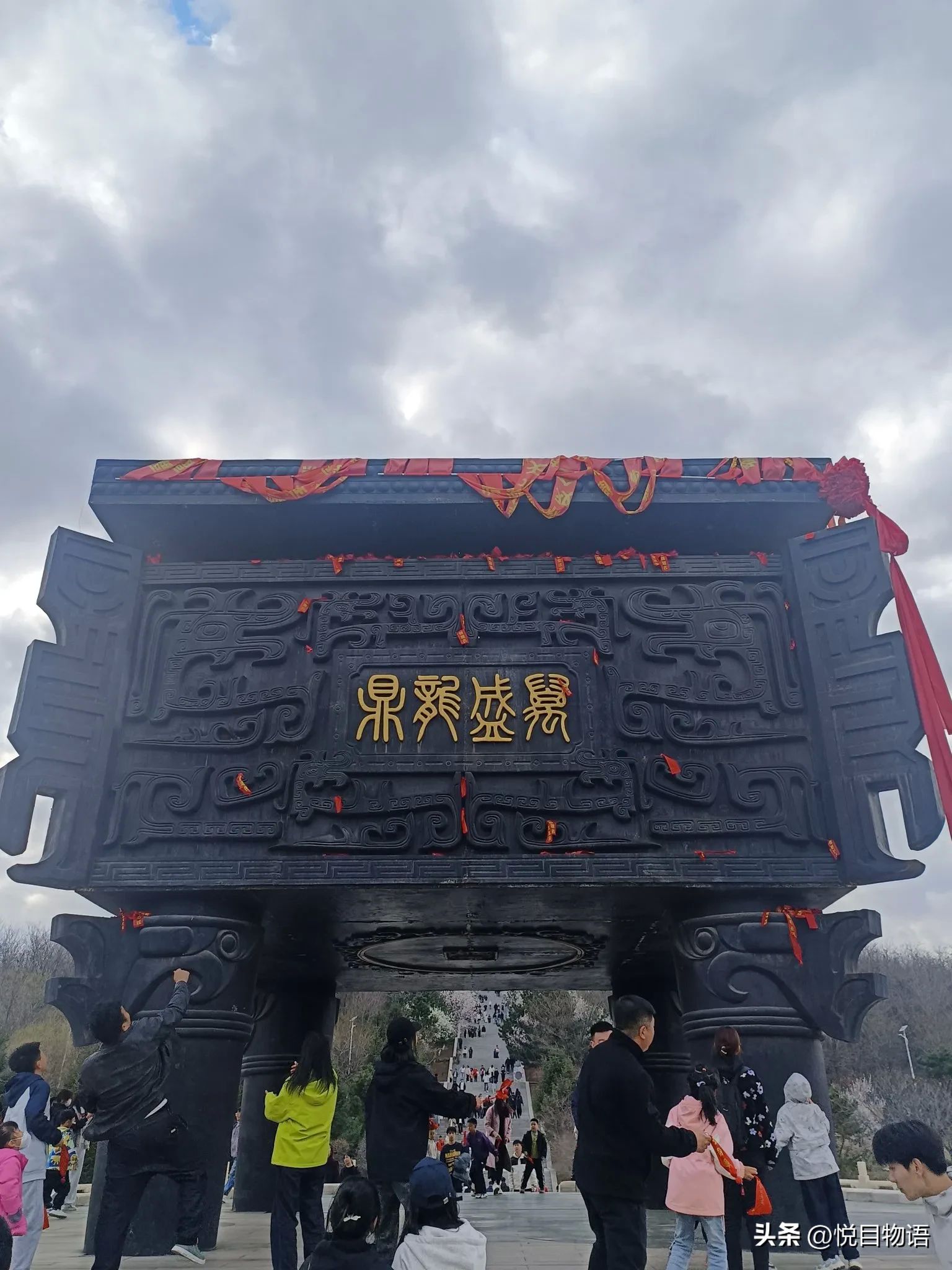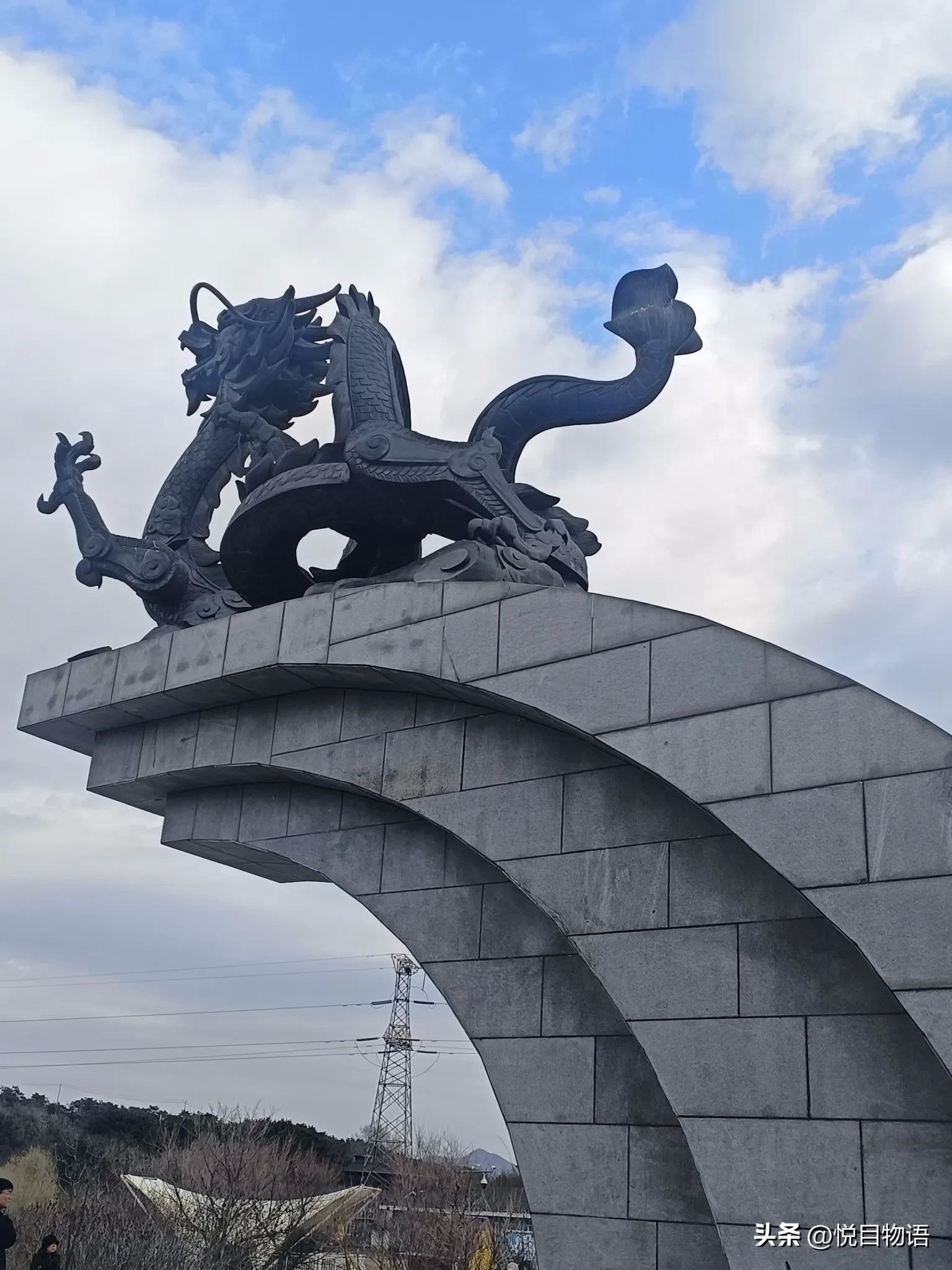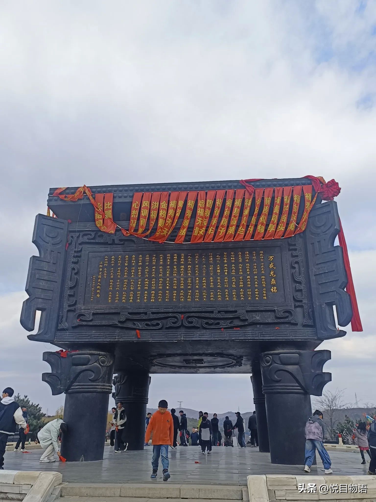 从观景台沿石街走下来,正对面就是龙鼎山的标志性建筑~万盛龙鼎。龙鼎高9.99米、宽8.88米、重150吨,气势磅礴、威武恢宏,采用铸钢仿青铜工艺铸造,造型古朴大气,兼具商周风格与现代工艺。南北两侧的鼎壁上分别铸有《百寿图》和《百福图》,大鼎底部饰有《五福图》,蕴含着多福多寿、五福临门的美好祈盼。