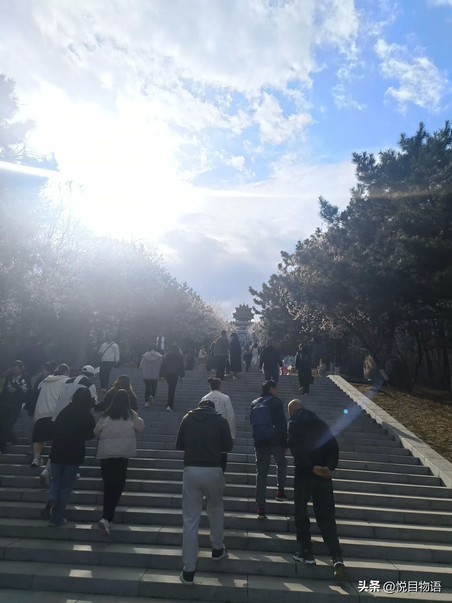 这次选择从风景区西门进入,沿着蜿蜒的山路前行。早春的辽阳,虽然刚刚才有绿意,但不影响人们爬山的热情。可能正值清明假期吧,熙熙攘攘的好不热闹。