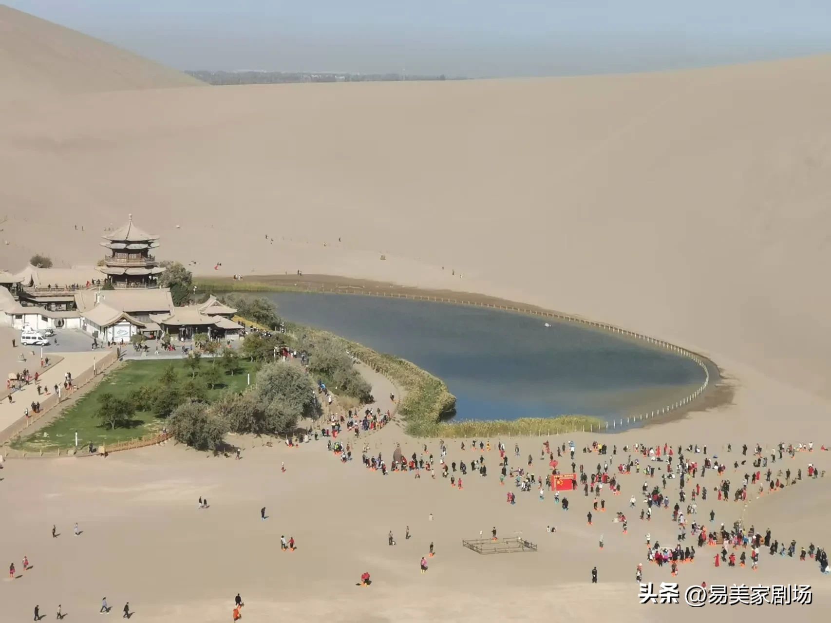 **月牙泉与鸣沙山**:敦煌境内月牙泉如碧玉嵌于鸣沙山间,沙漠与清泉共生,被誉为“塞外风光之一绝”。