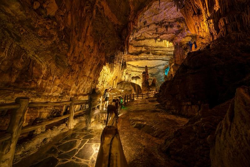“中国溶洞之王”:洞内石笋、石幔规模宏大,霸王盔、银雨树等奇观属世界罕见。