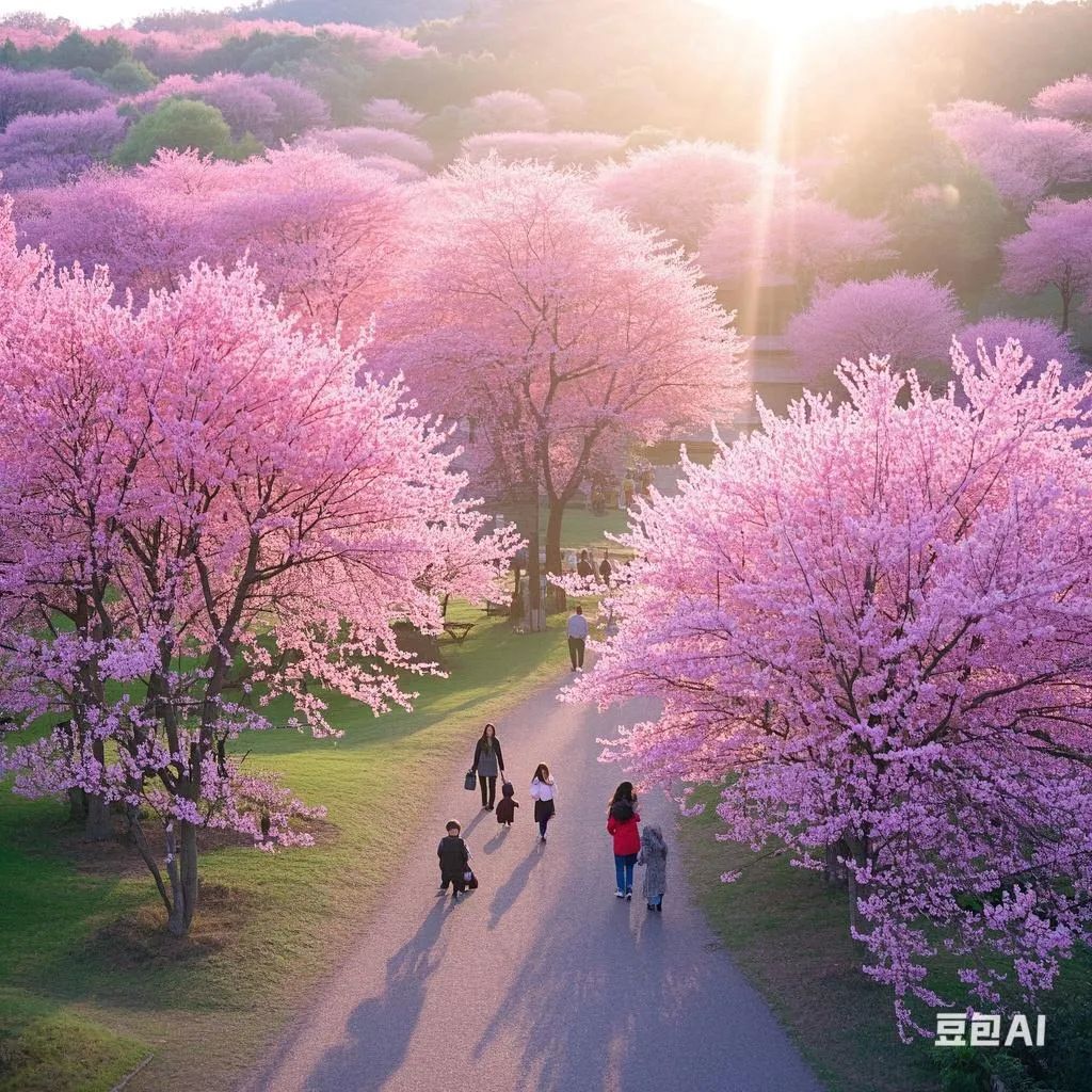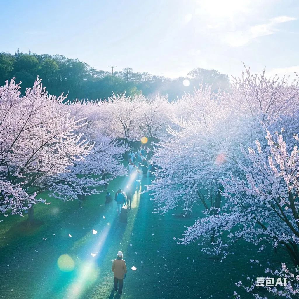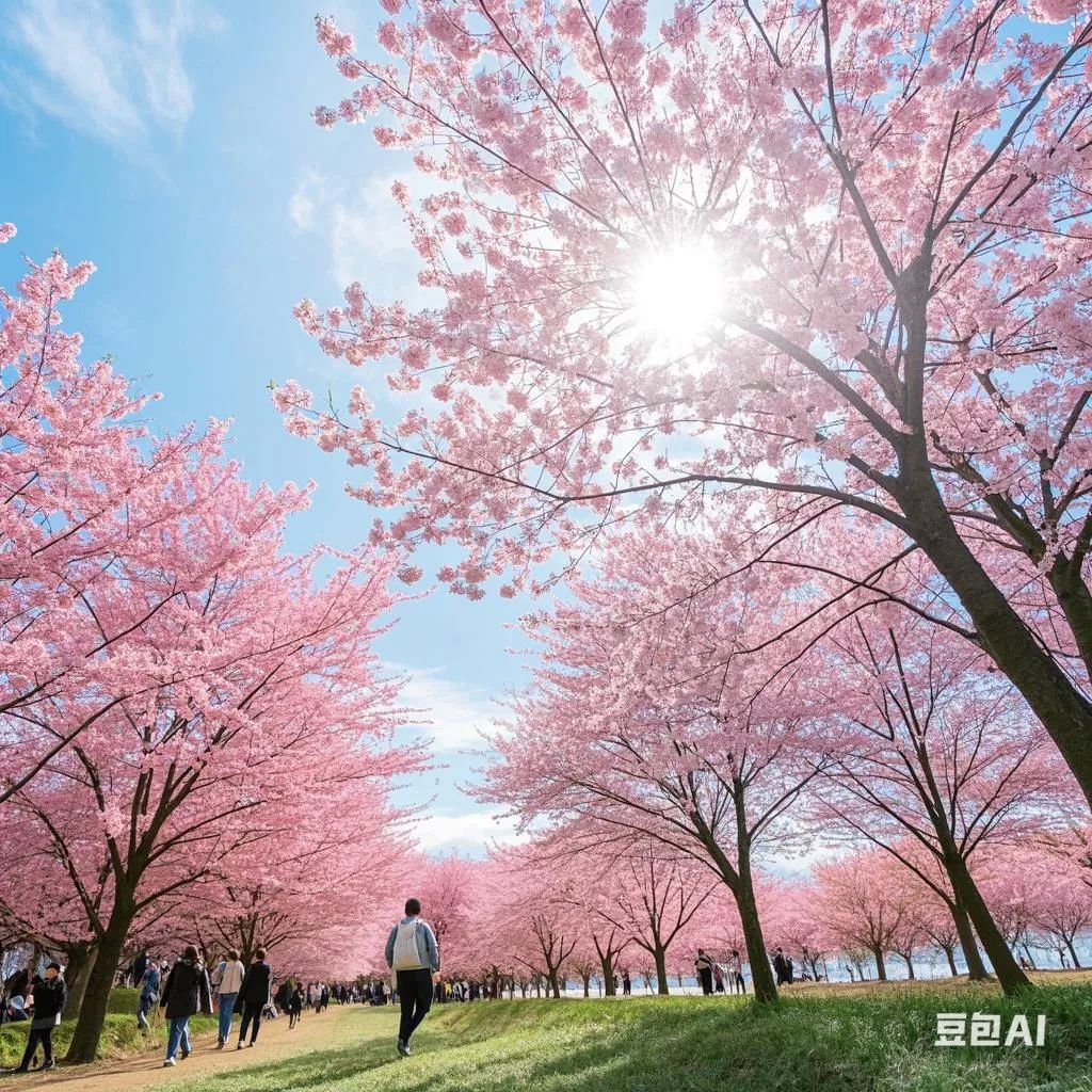 2. 双重浪漫:早樱(3月初)粉白如雪,晚樱(3月底-4月初)浓烈似霞,花期长达一个月。