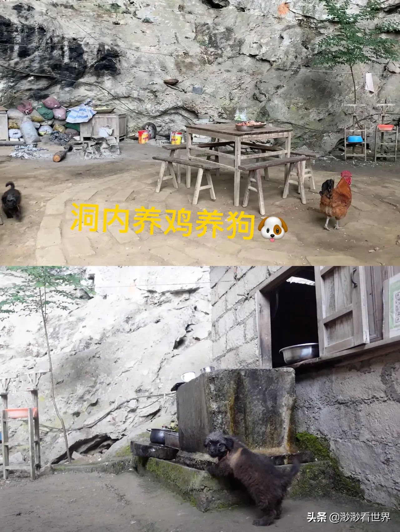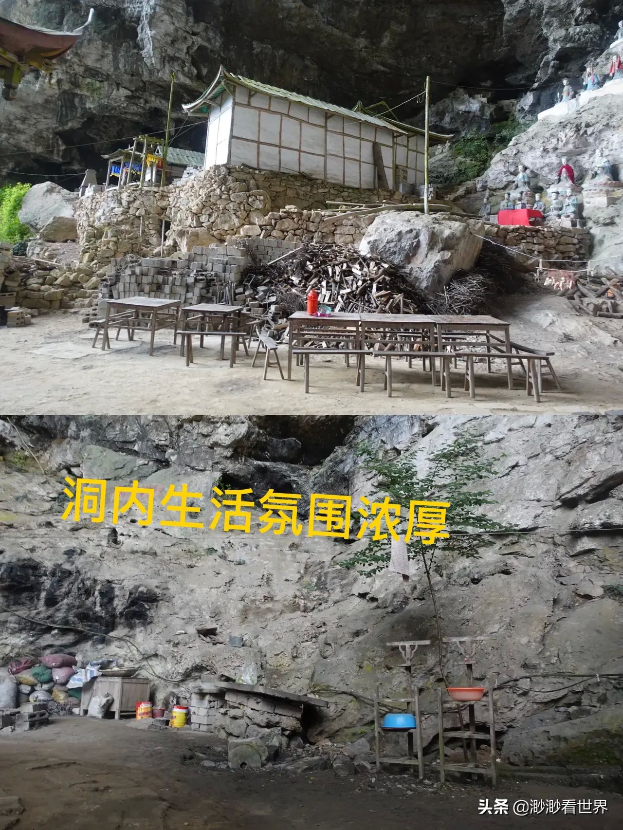 王道长还在洞内养鸡养狗,生活气息非常浓厚。洞内有很大的院子,摆放着几张桌子,经常有爱好探险的游客来这里探洞,中午便在这里吃饭,一餐饭每人¥15,很经济实惠。