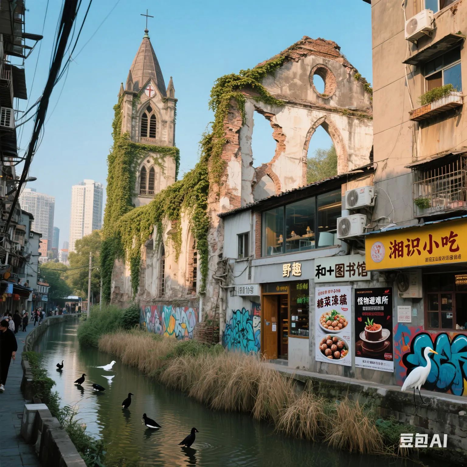 - 出片:民国真耶稣教堂遗址,残破的穹顶与爬山虎相互依存,下午四点的光影美极了。