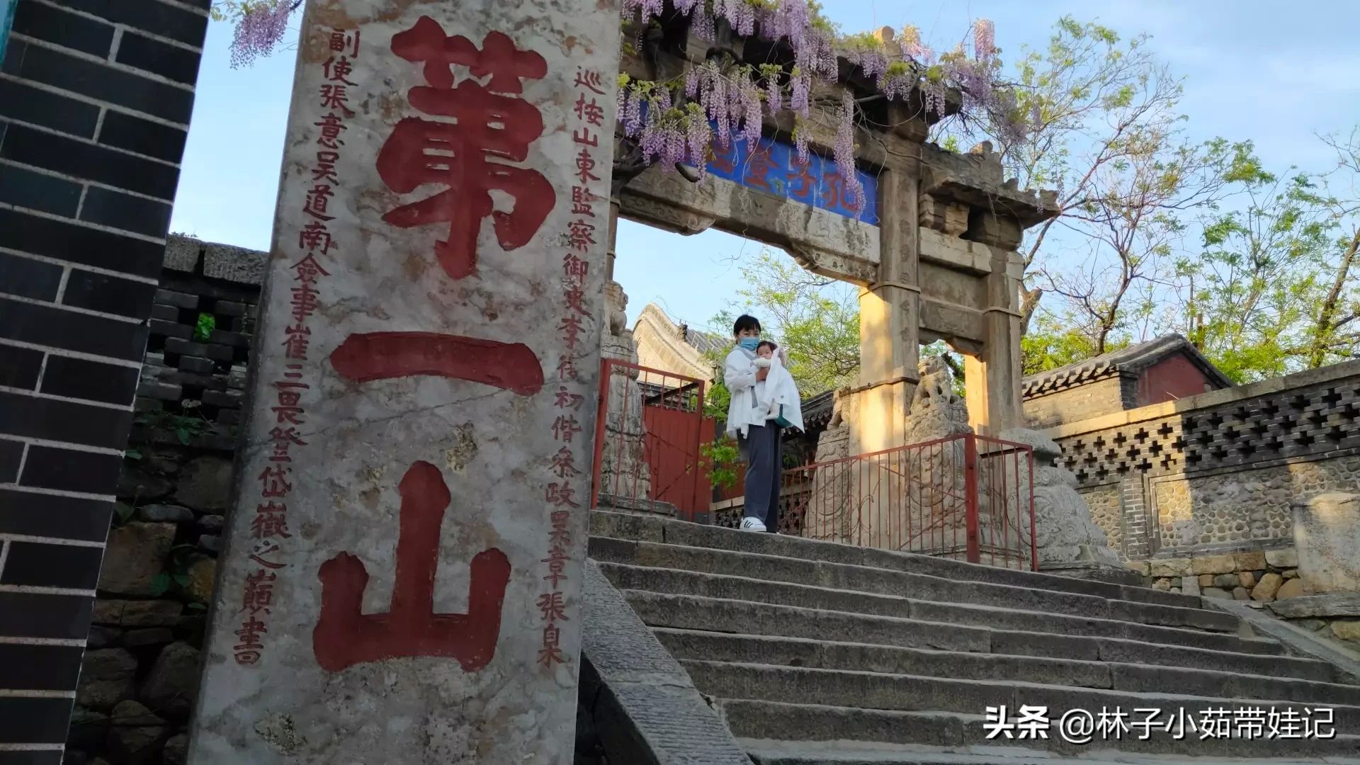 第三天到济南,泉水是济南的象征,济南泉眼众多,有名字的泉眼就有72个,趵突泉更是驰名天下,不但是72泉之首,也被称为“天下第一”泉。到达济南的时候下午3点了,晚上在宽厚里造的小吃,感觉还不错,夜晚的宽厚里和解放阁还是推荐去的因为灯光的照应非常美,济南第二天我们去的大明湖畔,然而夏雨荷家里锁门了,荷花这个时候也没有,绿草绿树,垂柳倒是很应景,想来的小伙伴在等等暖和一些的吧,之后我们去了泰山,无奈又是下午了,车不是很多,很快就到泰山红门山下了,因为带着这么小的宝宝是不可能登山的,我们溜达一会就下来了。带宝宝非要登的话那是真没长心啊,孩子遭罪大人也遭罪啊。而且这个季节下午太阳要落山了,还是比较冷的,夜爬想看日出的小伙伴要多穿一些防寒。