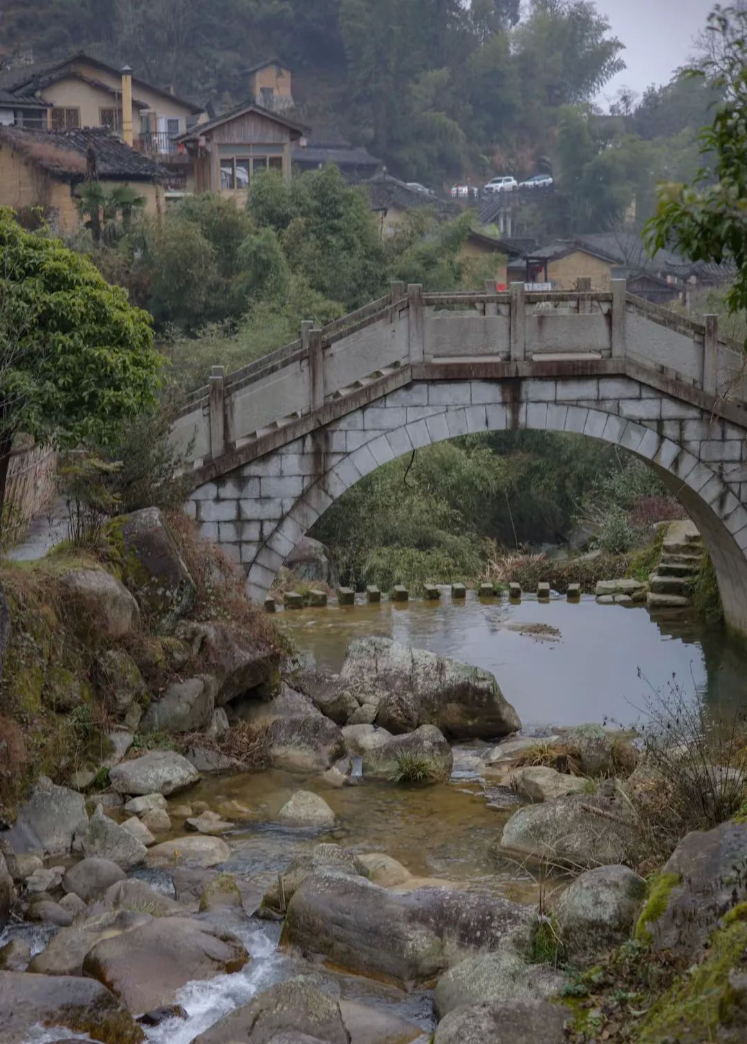 - 村口古桥:石桥横跨溪流,周边绿树成荫,以古桥和梯田为背景,怎么拍都出片。