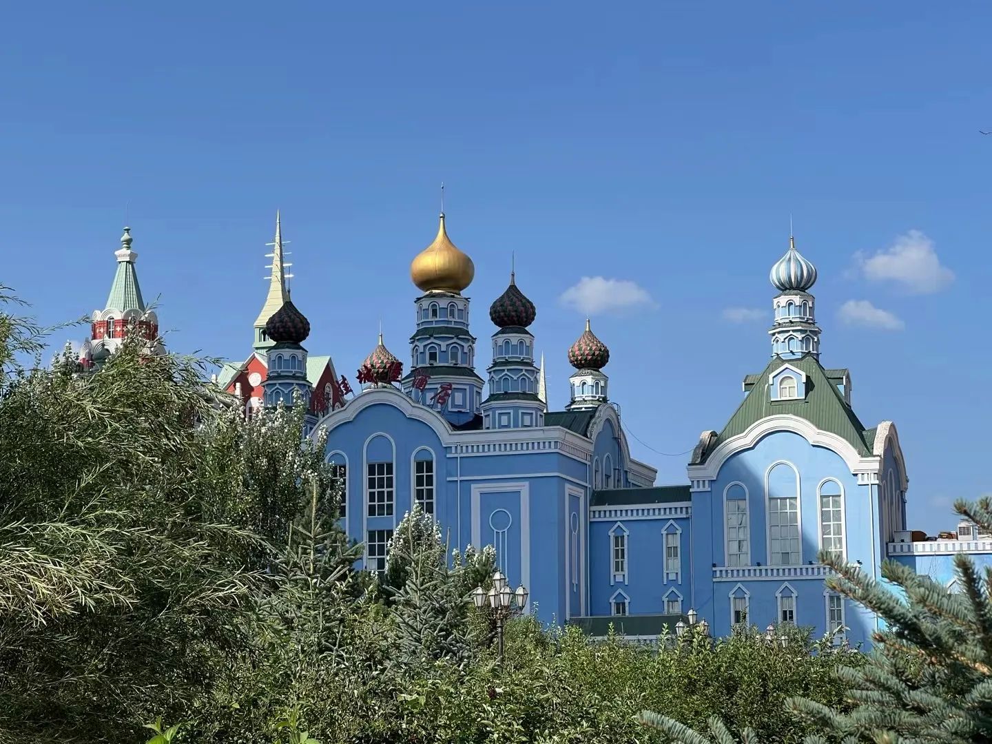 走进满洲里,首先映入眼帘的是那具有浓郁俄罗斯风格的建筑。洋葱头状的圆顶,色彩斑斓,在蓝天的映衬下格外醒目。蓝白相间的外墙,搭配金色的穹顶,仿佛童话中的城堡,让人仿佛置身于异国他乡。