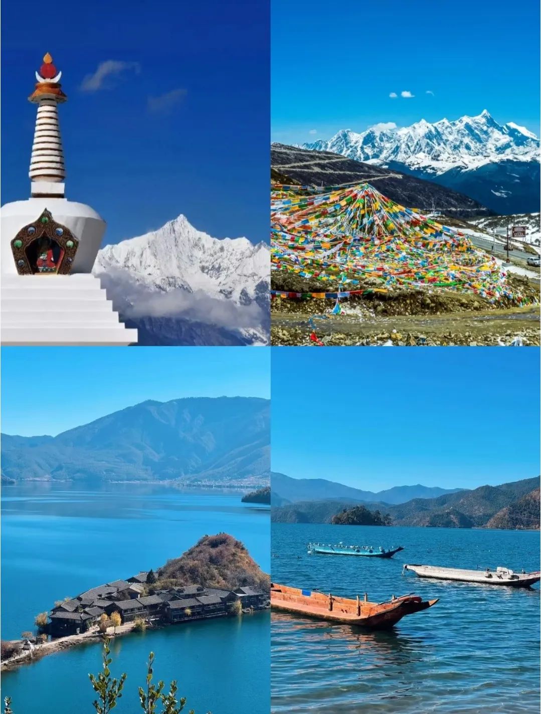 香格里拉:普达措公园、虎跳峡、独克宗古城、梅里雪山日照金山、白水台、松赞林寺。