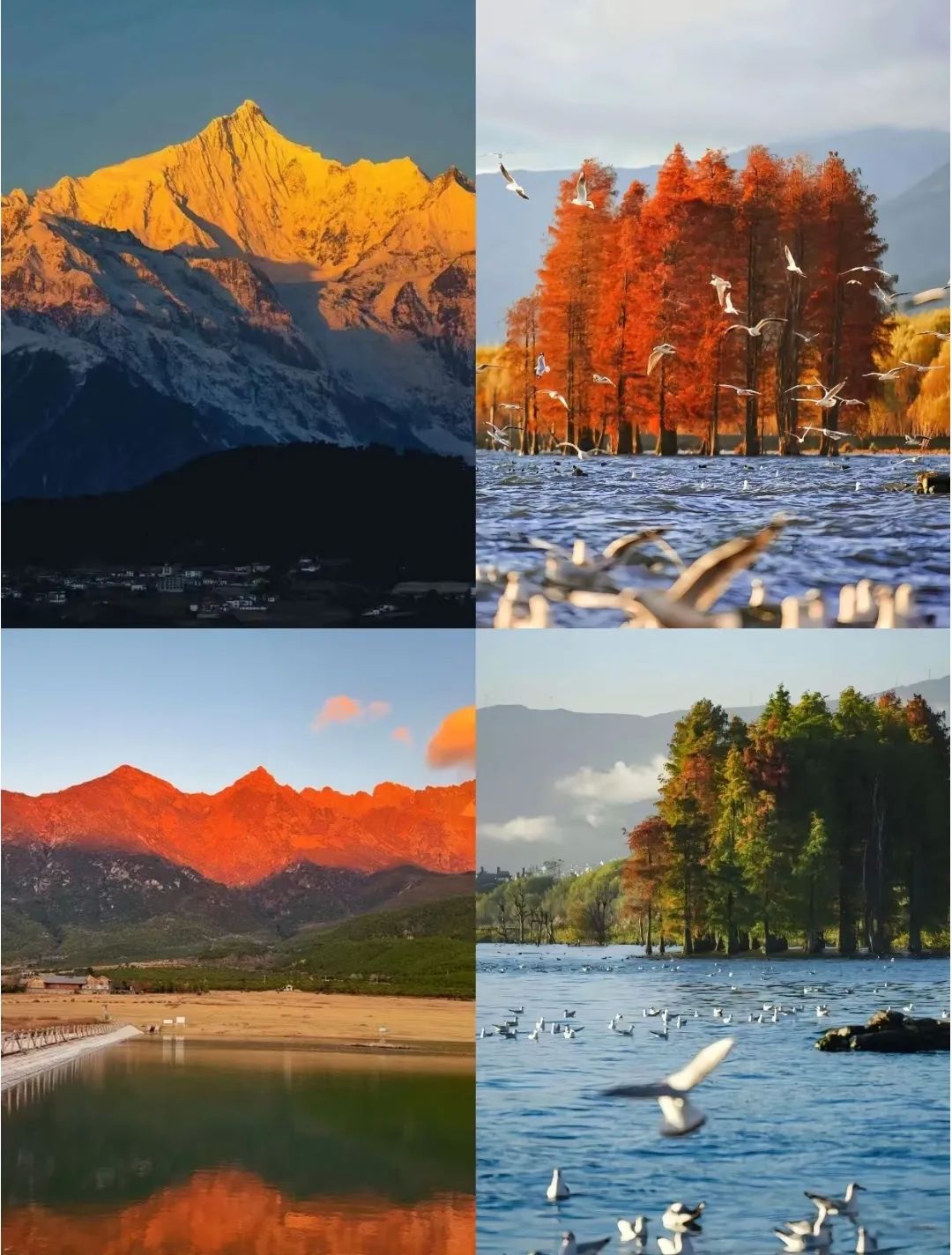 丽江:玉龙雪山日照金山、蓝月谷、云杉坪、束河古镇、丽江古城。