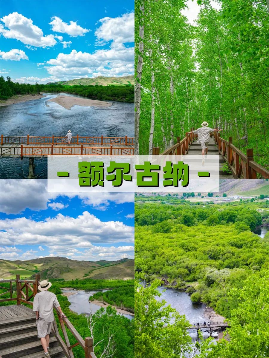 4. 额尔古纳湿地:站在1号观景台,便能看到蜿蜒曲折的“亚洲第一曲水”,如一条银色绸带在大地上蜿蜒。周边的白桦林是拍森系写真的宝藏地。尤其在9月,秋色绚烂,下午4点左右逆光拍摄,画面绝美,仿佛走进童话世界。