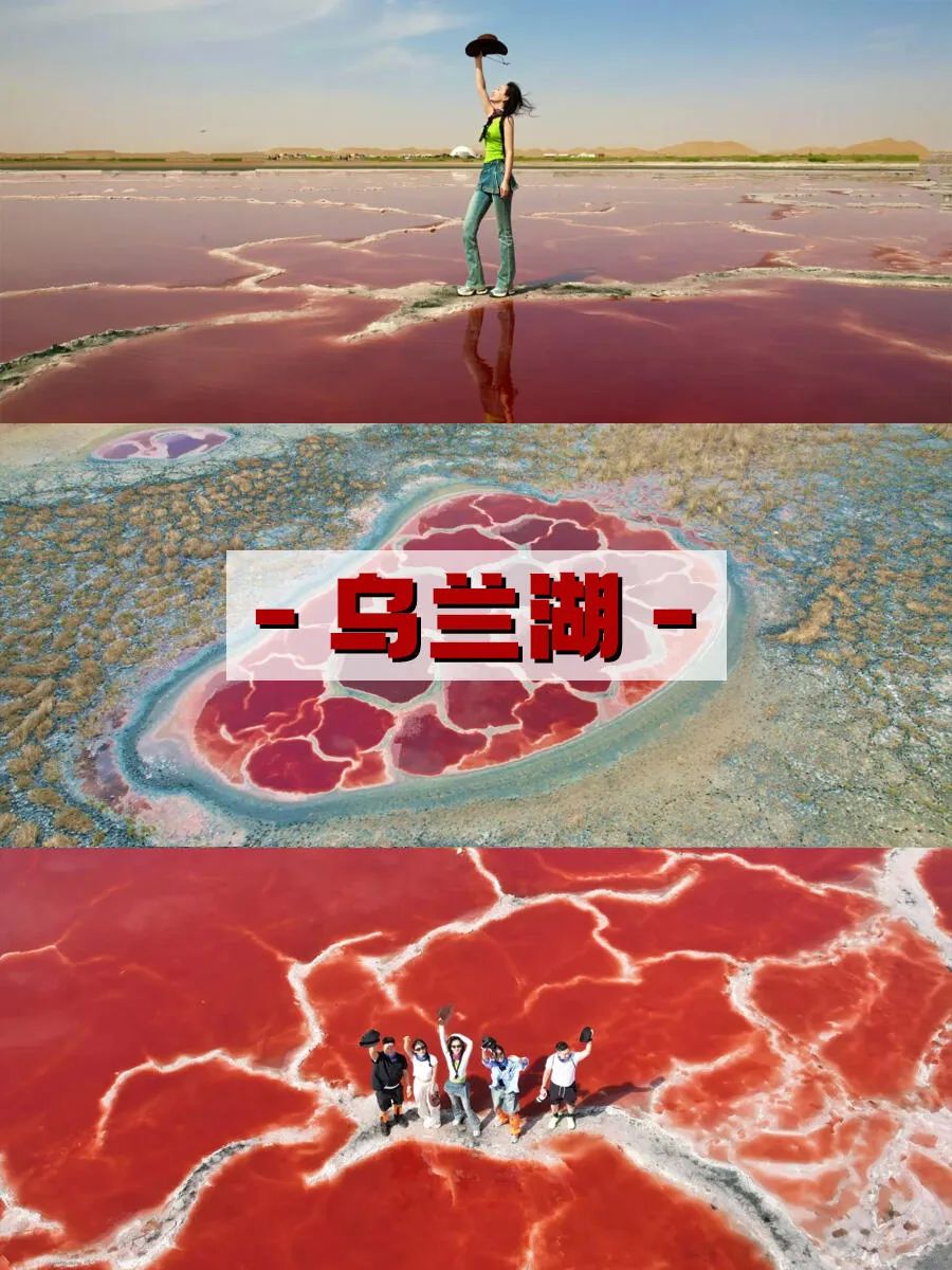 5. 乌兰湖:7 - 8月是湖水最红的时候,宛如一颗璀璨的红宝石镶嵌在沙漠之中。不过前往乌兰湖需乘坐越野车穿越沙漠。要想拍到“地球心脏”这一震撼景观,无人机是必备工具,因为从地面视角很难看到它的全貌。