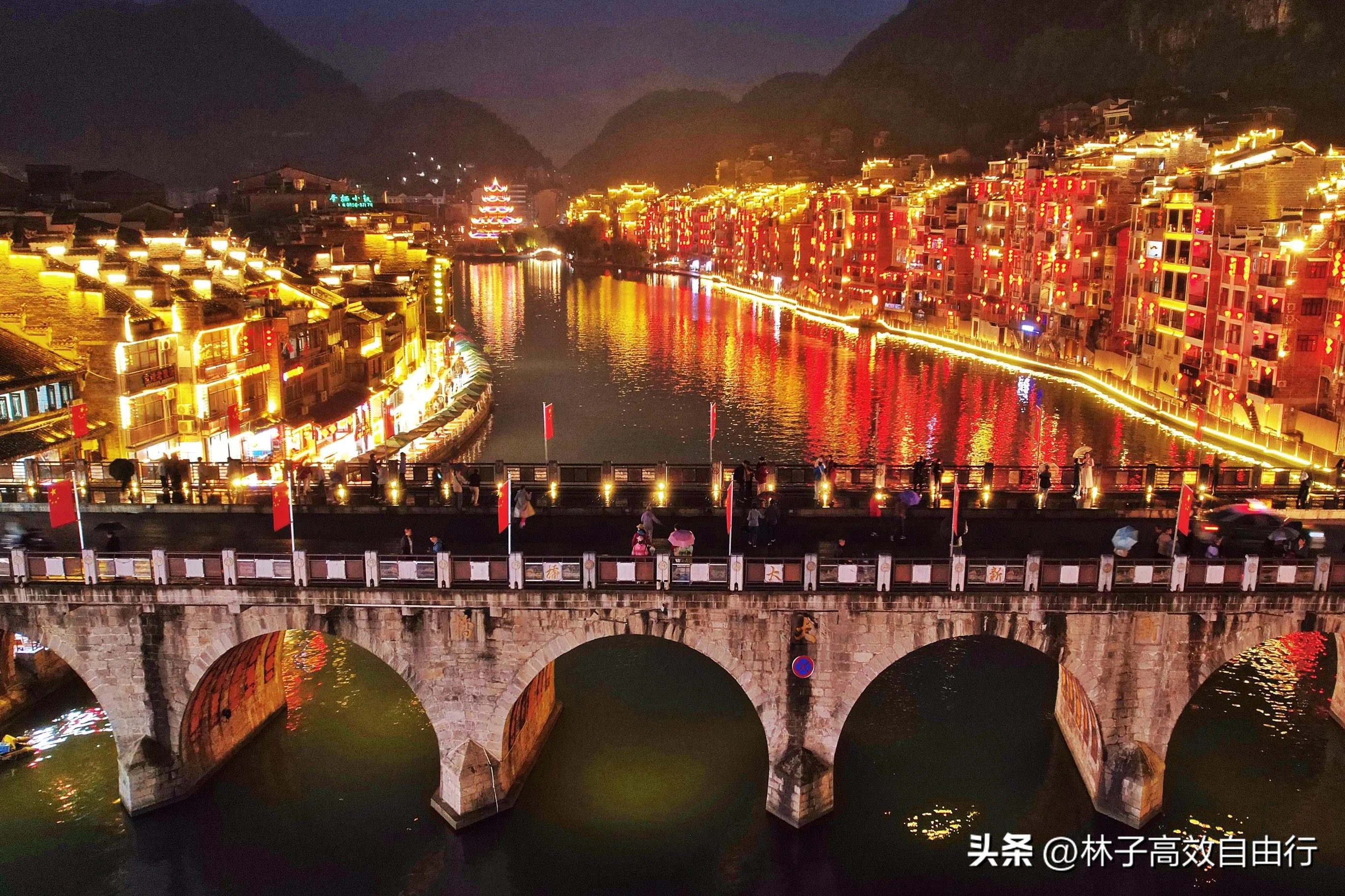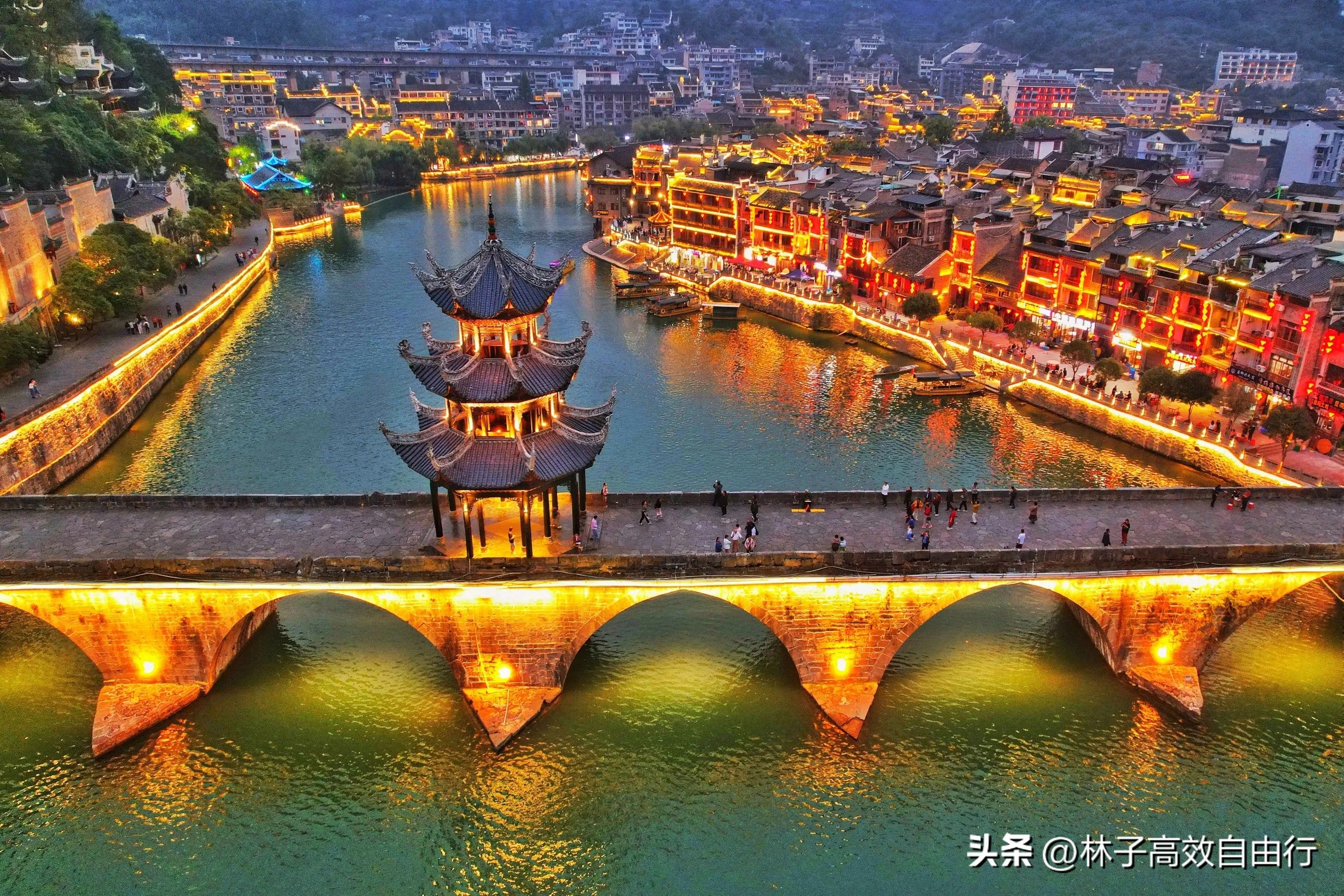 青龙洞原收费60元,现在打五折30元。千万不要过错青龙洞,抛开它的文化背景,单从青龙洞俯瞰古城和舞阳河就很美。图1图3图4图5图6就是在青龙洞拍的。青龙洞下午6点关门,所以在这里是看不到古城夜景的。