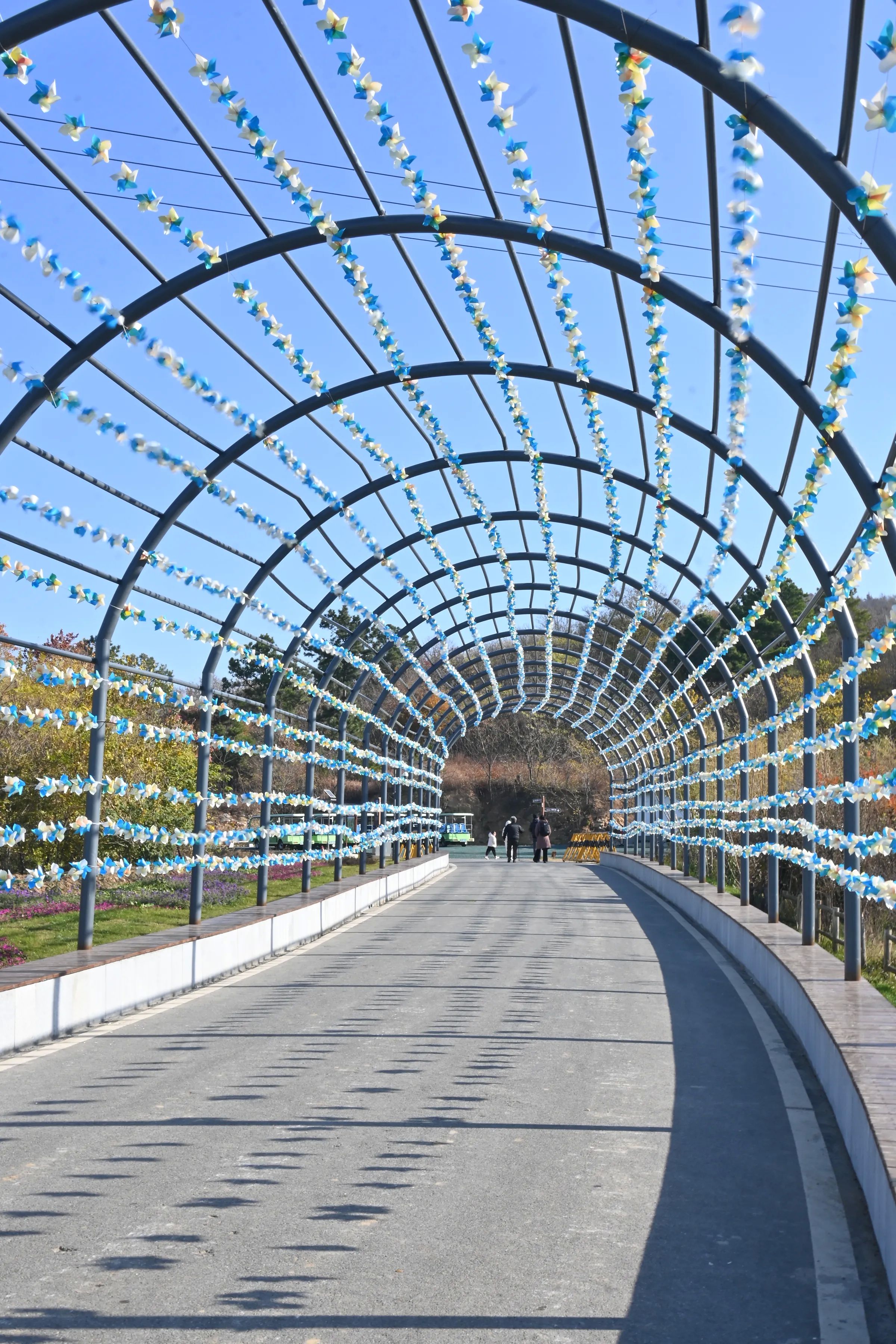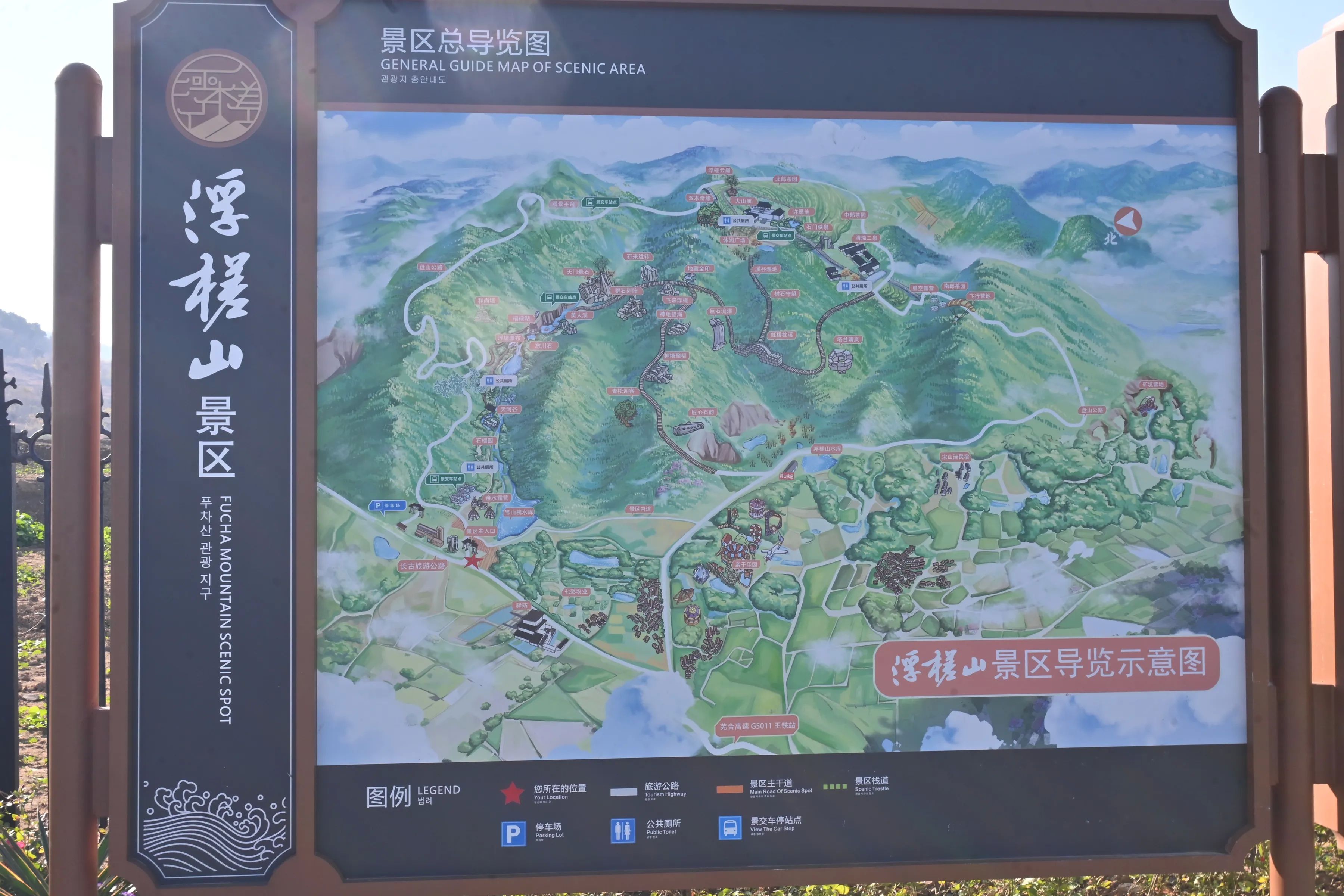 游玩方式:从景区新大门进入在景区内可以选择景交和徒步方式,从景区主大门进入,穿过风车拱门左手边就是游客中心和卫生间,游客中心左边的路线是环山公路,干徒步景色略显单调,右手边既是爬山徒步路线,我选择的是徒步爬山到达浮槎云巅然后从环山公路徒步下山,全程大约3个半小时左右