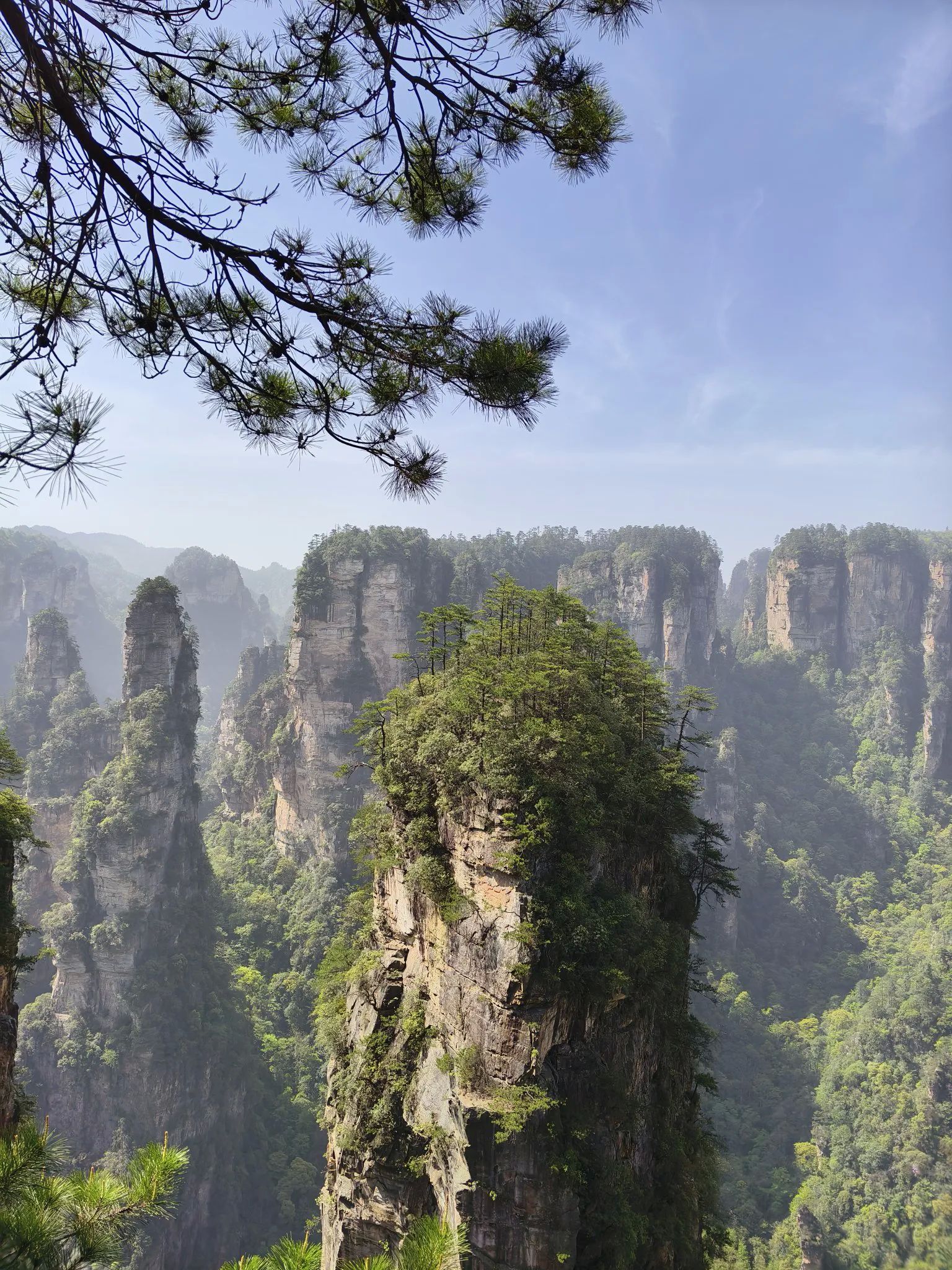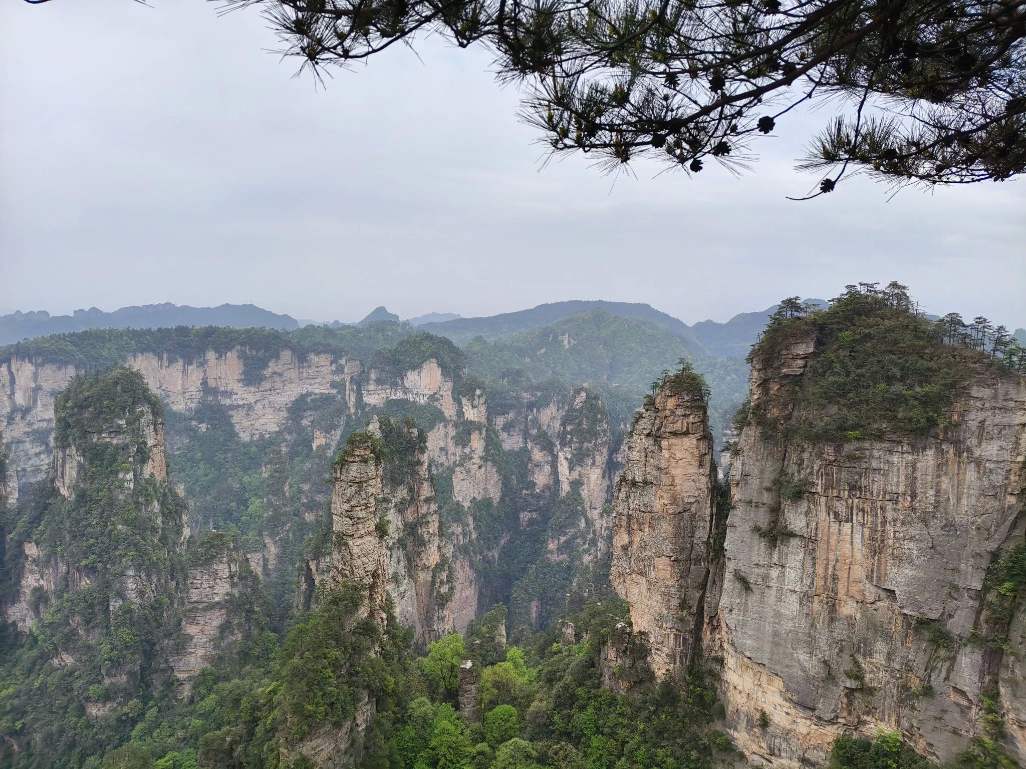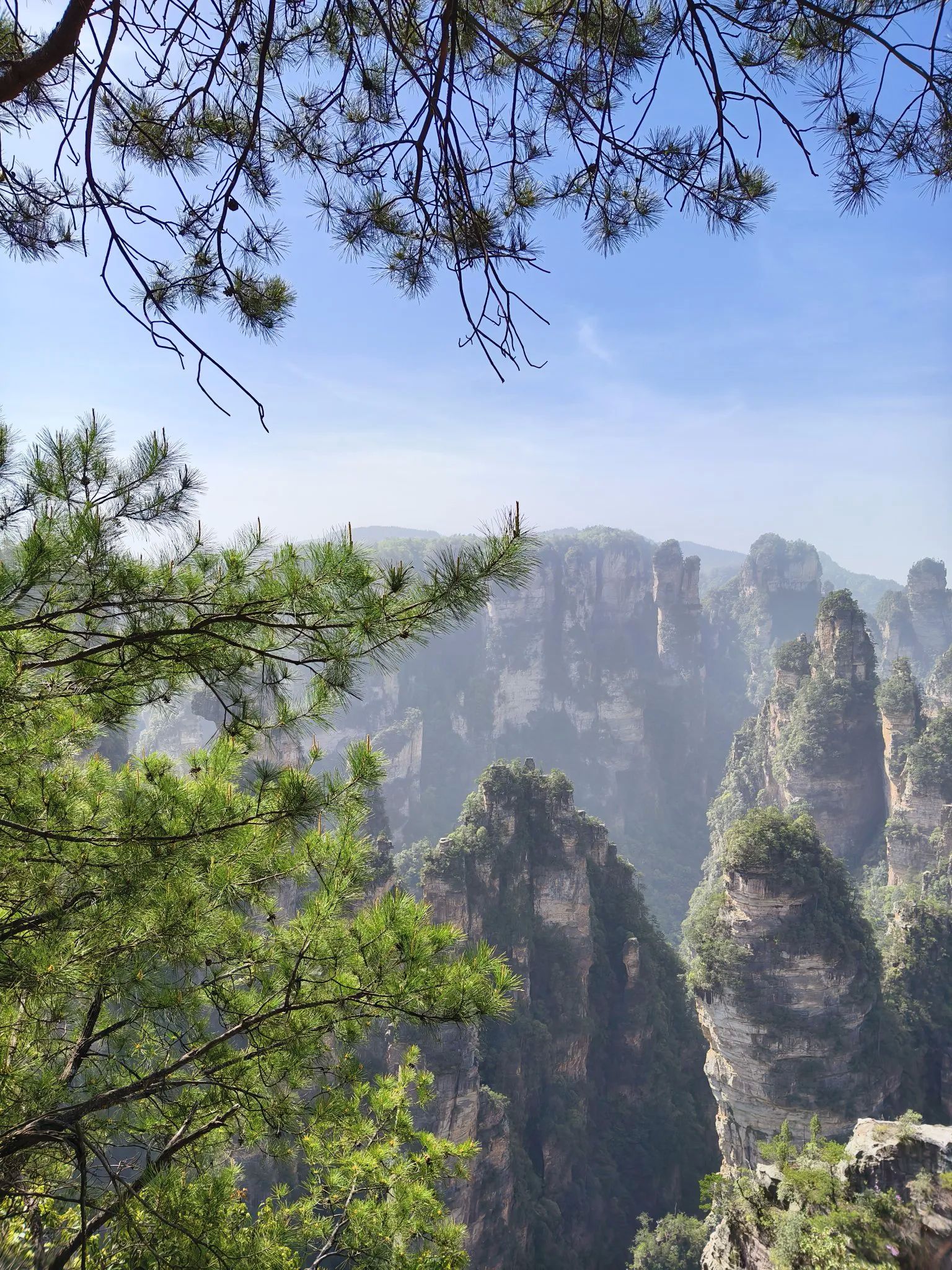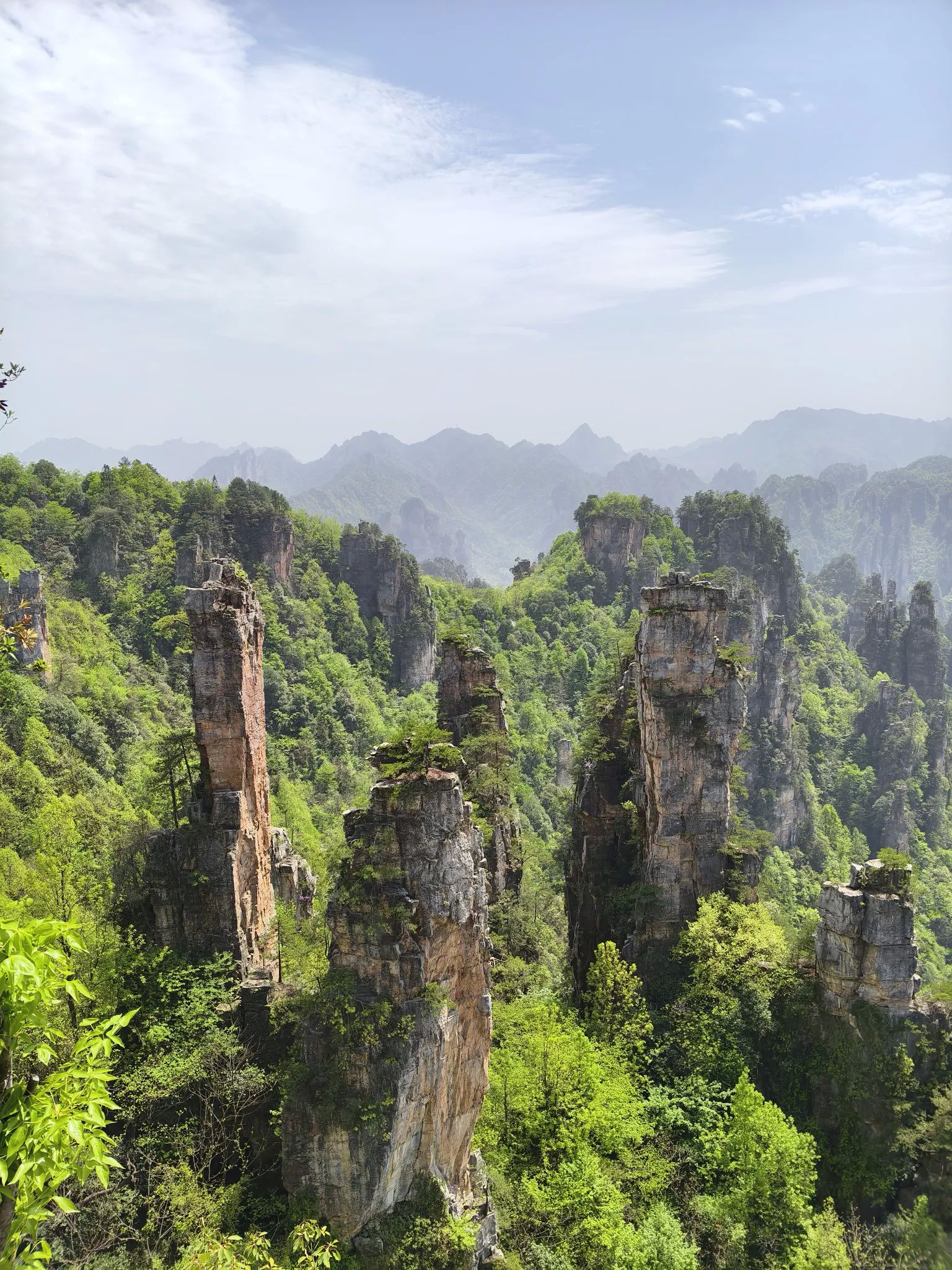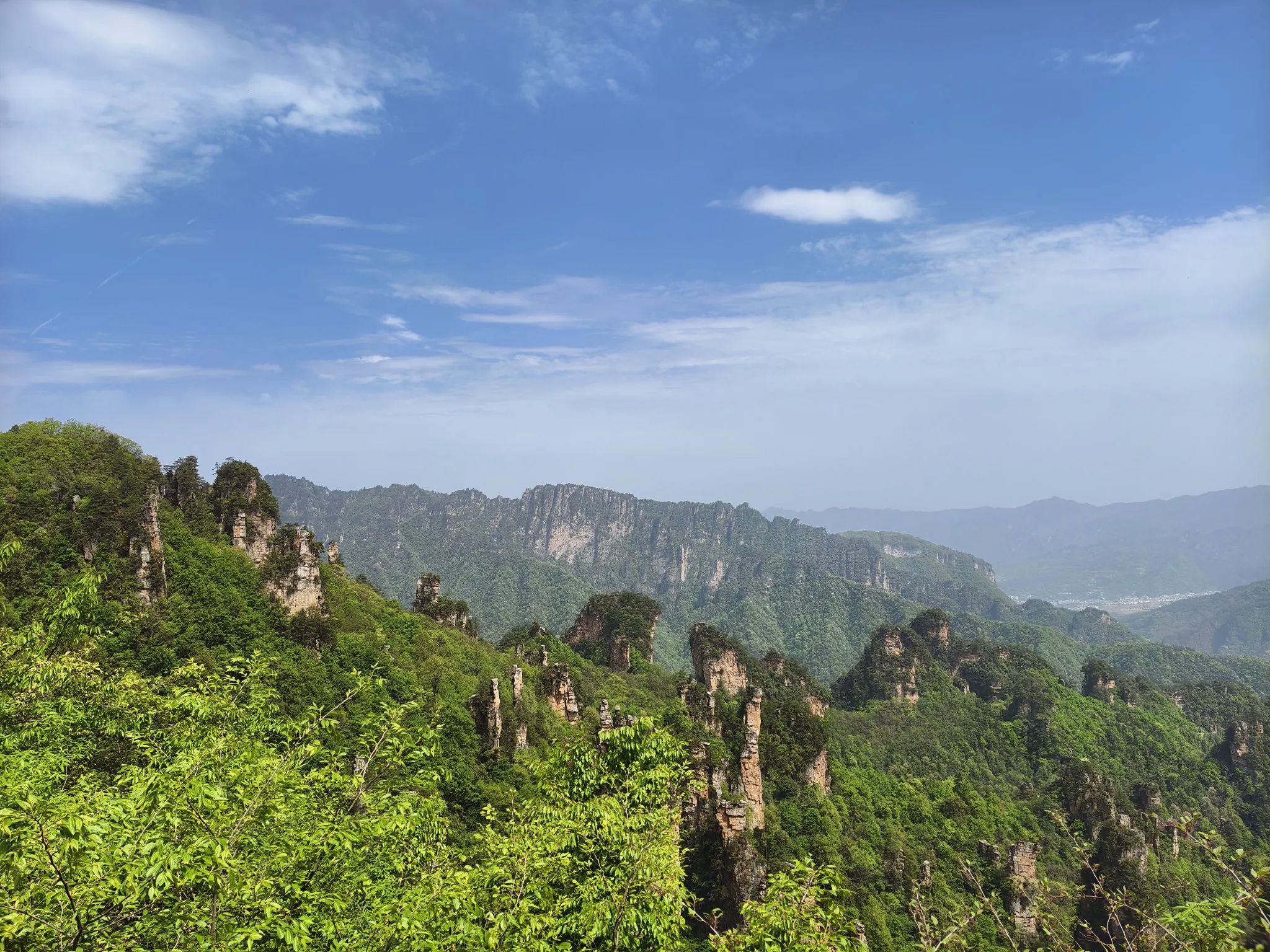 第四天,酒店的早餐品种和口味还算可以,当然在武陵源景区门口,280元的房费,要求也不能太高。步行十来分钟就到了张家界国家森林公园东门(俗称标志门,因为门口有一座武陵源标志塔),排队大概一二十分钟,坐了接驳车至世界最高的百龙天梯,又排队一二十分钟坐上了电梯,88秒直达山顶、美景突然出现在眼前的感觉还是挺震撼的。步行游览袁家界,张家界标志性的各种形态的石英砂岩山峰鳞次栉比,目不暇接。坐接驳车到杨家界,又坐了索道下山,问工作人员山下有什么景点,回答说景点都在山上,只好又回到山上,打卡天然长城-峰墙。坐接驳车到天子山,这里的美景可以媲美袁家界。坐索道下山,又坐接驳车回到东门。