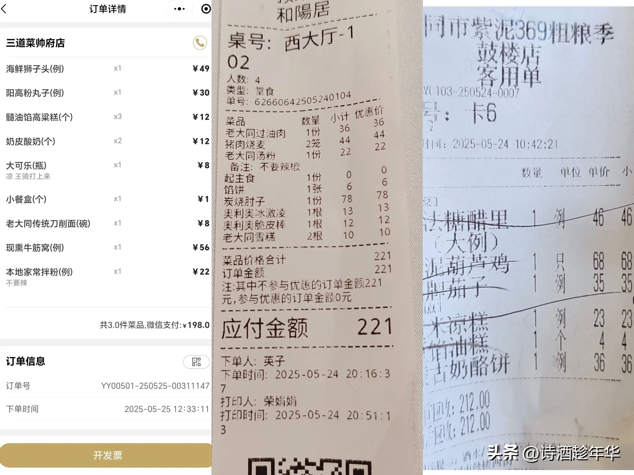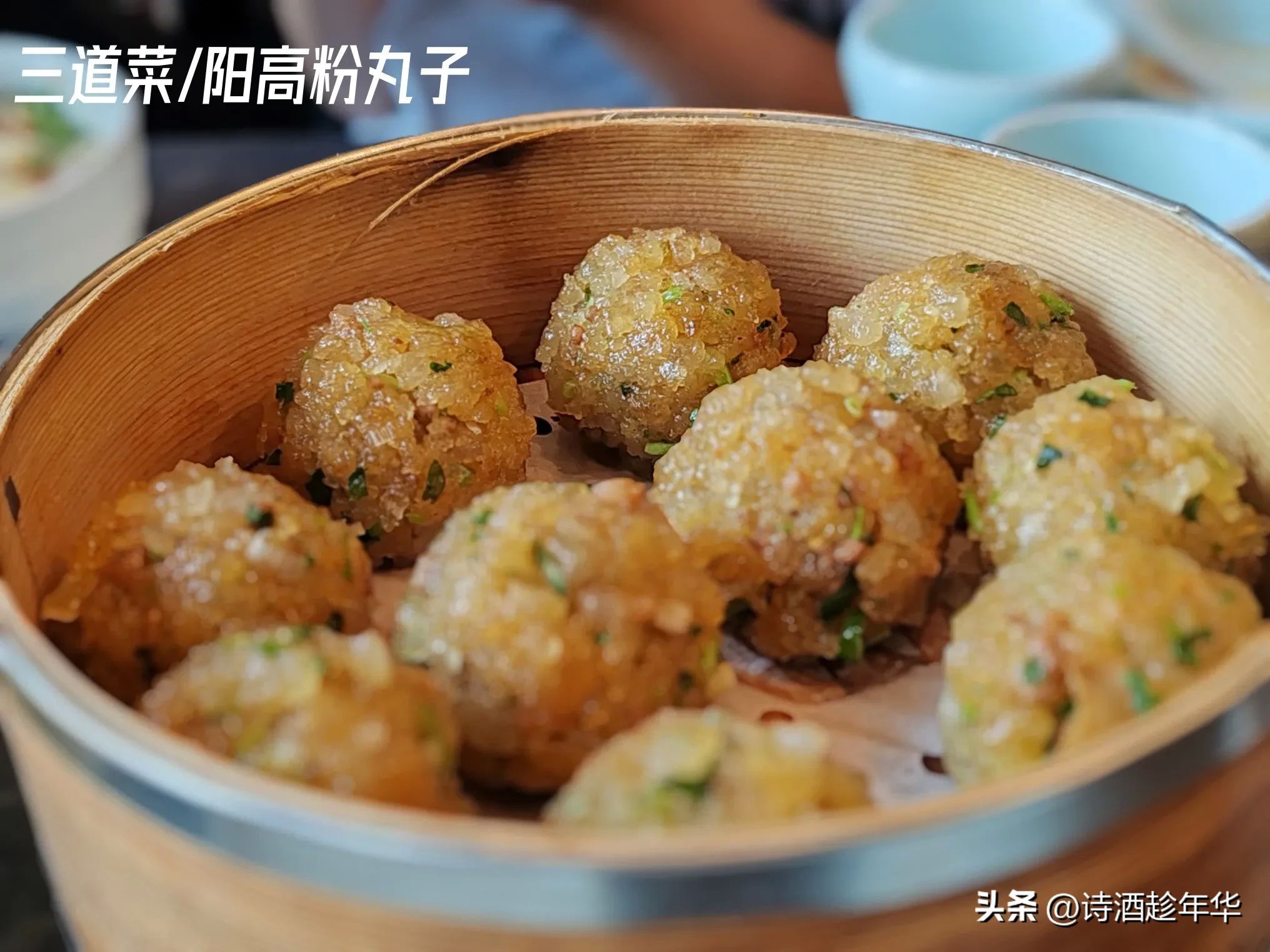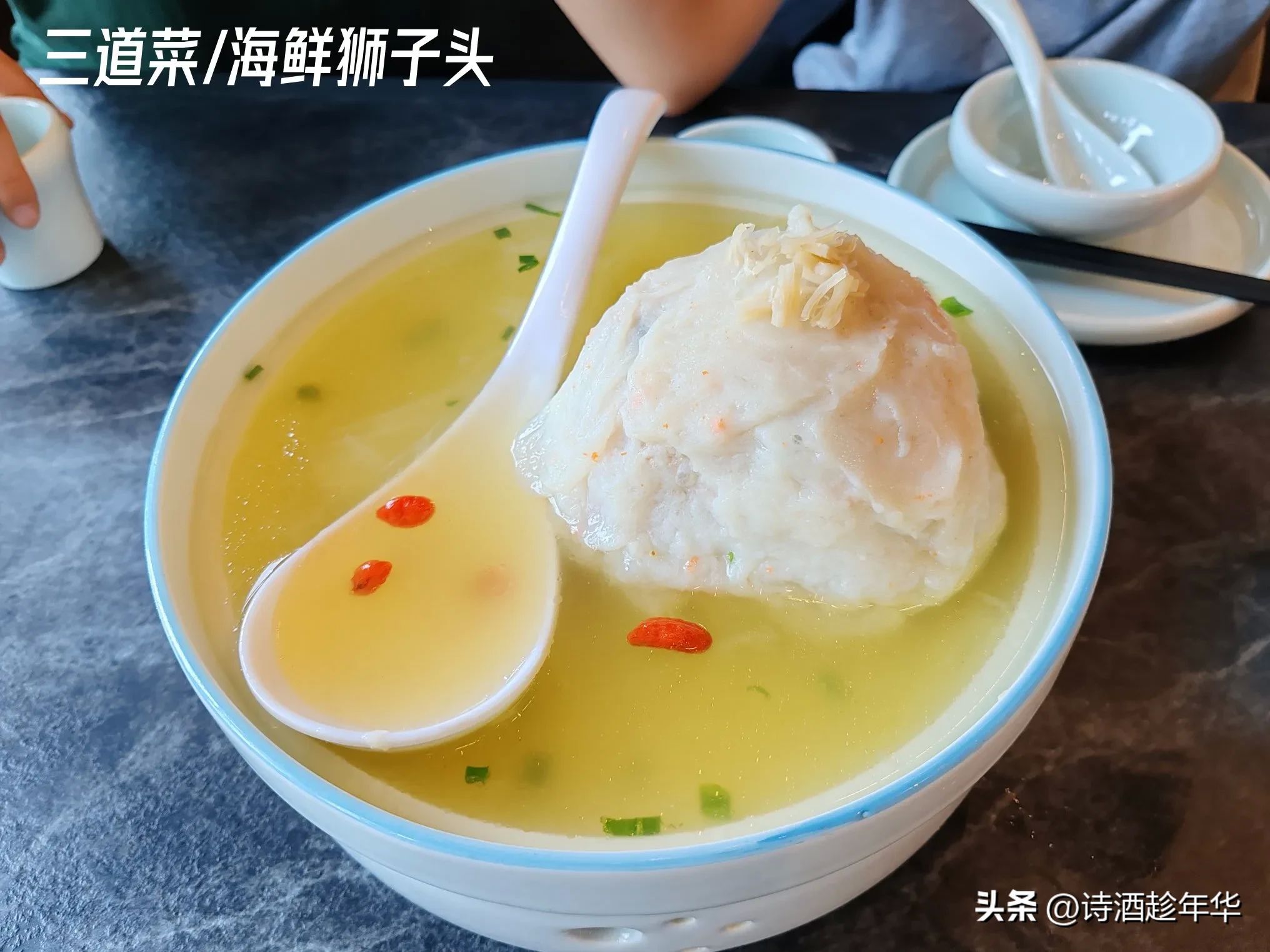 出善化寺又到了最美妙的时刻-午饭时光。这次我们去三道菜。这个馆子就在紫泥的北面钟楼西北角。装修那叫豪。海鲜狮子头,是我吃过最大最好吃的狮子头,里面居然还有大虾,毋庸置疑又是儿子的最爱。凉拌粉是女士们的最爱。现烤牛筋窝那叫一个软糯鲜香,再有个烧饼夹着吃那最好了。这次来我心目中的饭馆排名三道菜,和阳居荣升头牌,不用排队。不错的还有北魏家宴,龙聚祥,喜晋道等,要是您来建议您每个都尝尝,记住要点就点它的招牌菜,一准好吃。