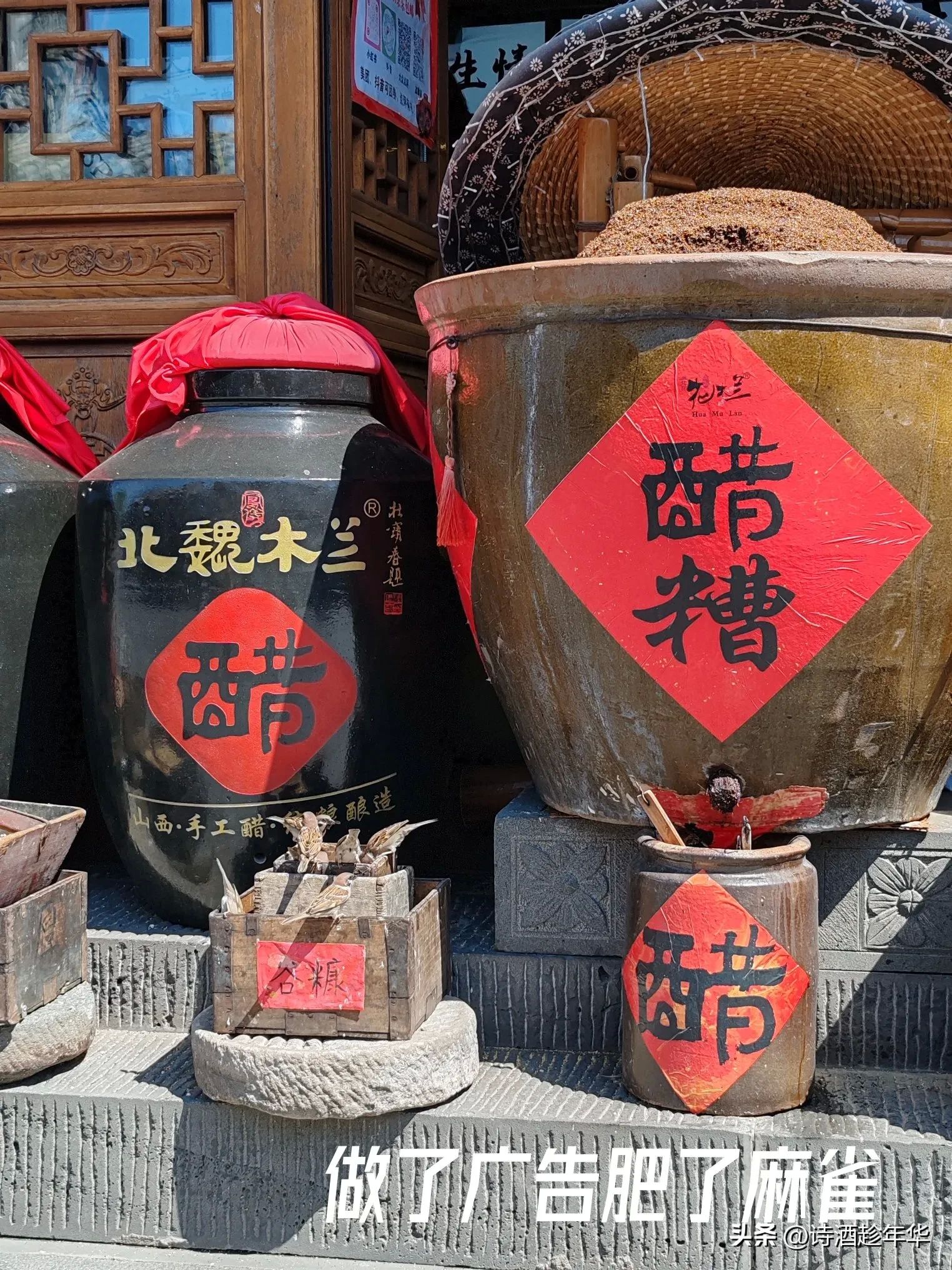 我们由华严寺往回返一小段到凤临阁这里往东走。这是仿古街的主街。是我们家孩子最爱逛的地儿,沿街有各种商铺,货品各种各样。有一家卖醋的门前放几盆子醋糠,竟成了麻雀的食堂,把一群麻雀喂的肥头大耳。还有一个叫蘭桂兴的醋店,我一个朋友上次来这儿买了几瓶,回去一吃,嚯,好吃!据说后来没这醋都不吃饺子了!这次我来赶紧给他带几瓶回去,就是贵呀,四小瓶一百。