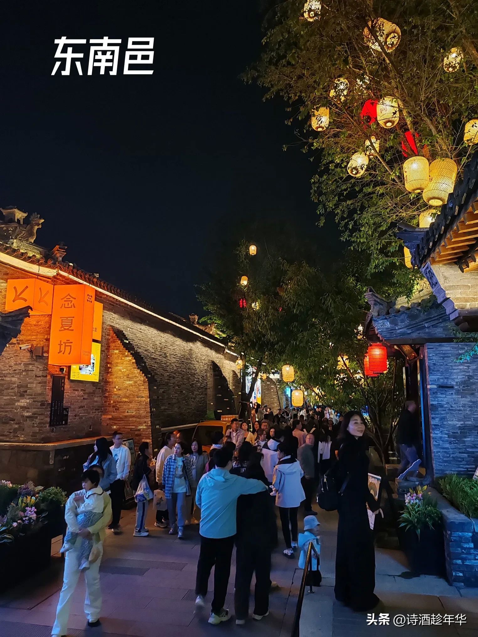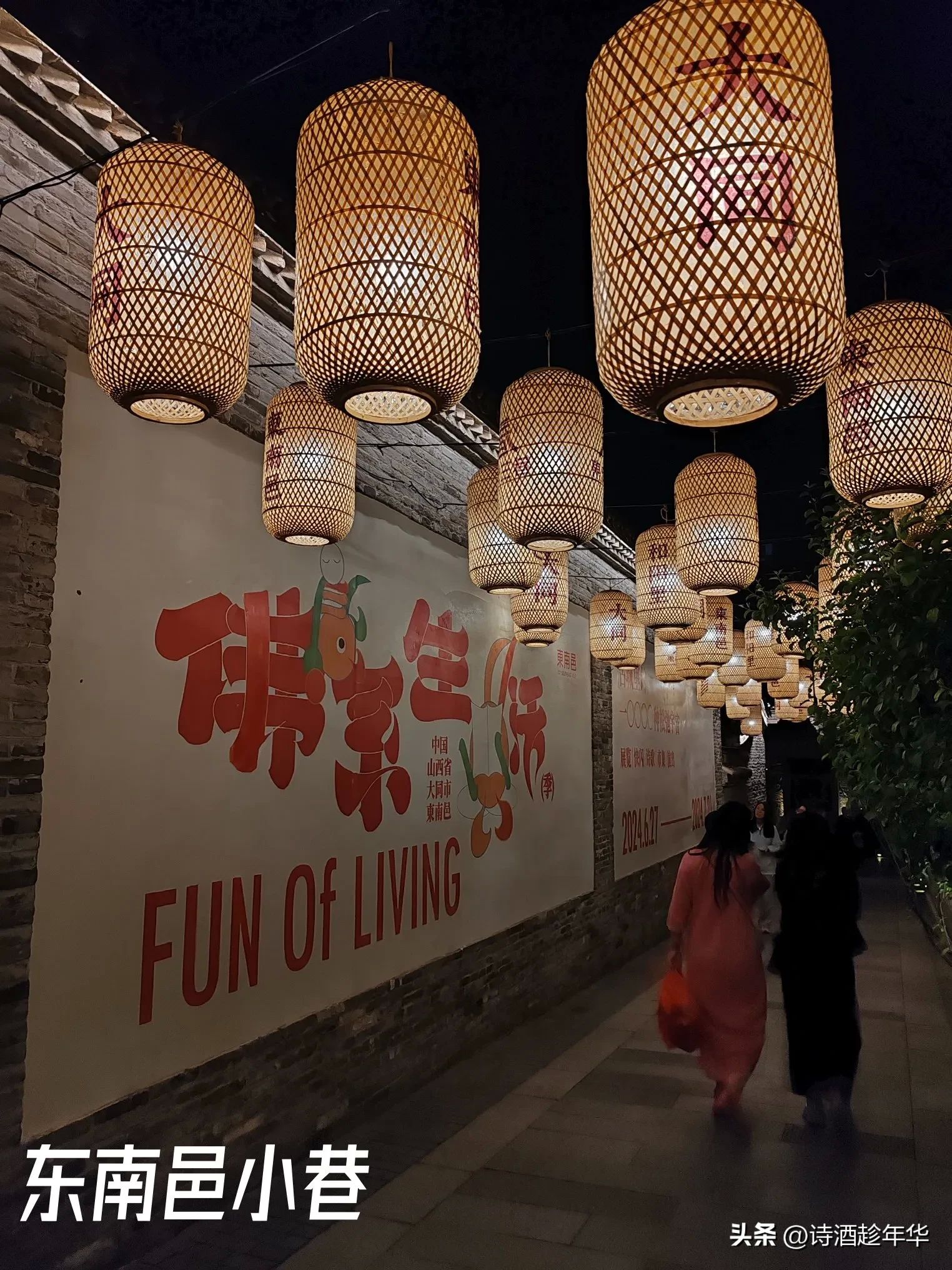 傍晚出来不那么晒,过了鼓楼往东逛,这是鼓楼东街。刚到就看见一家烤鸡腿店排老长队了。一路逛过几个小店,到了关帝庙。夏日在关帝庙的长廊里泡一壶茶,才是最惬意的。过了关帝庙就是潮流圣地东南邑。这里正在举办歌会,有很多歌手。走着走着已是华灯初上,东南邑的灯光逐渐明亮起来,这才是东南邑最美的时刻。青砖灰瓦,小巷幽深,流光溢彩,游人如织,仿佛穿越千年,美的醉了!这里有文创店,书屋,咖啡馆,博物馆,时尚餐厅,脱口秀等等。需要仔细逛逛,拍照的地方也很多且出片。