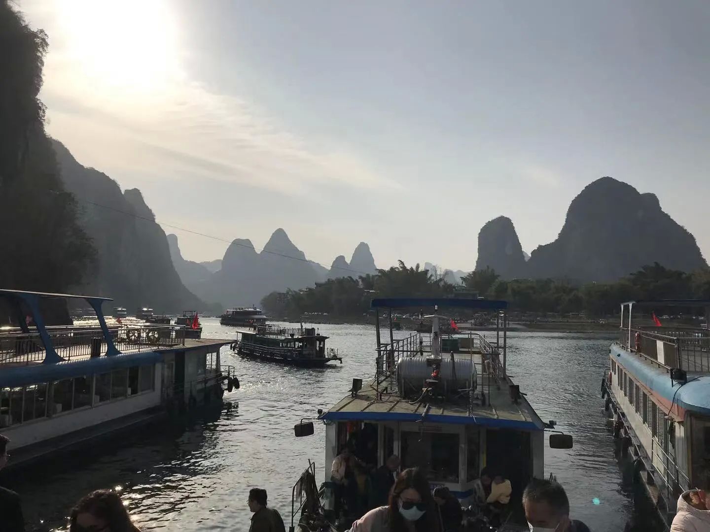 4.旅游景点的话在西街旁边的旅店都距离挺近的,其实不需要报了个旅游团,我们就是报了,旅游团200元个人一天感觉还是建议不要报,时间很赶,欣赏风景时间不多,如租一辆电瓶车(50元/天)两天能差不多玩完阳朔西街和千古情圆还有那个新平古镇,那个月亮山什么的更好,