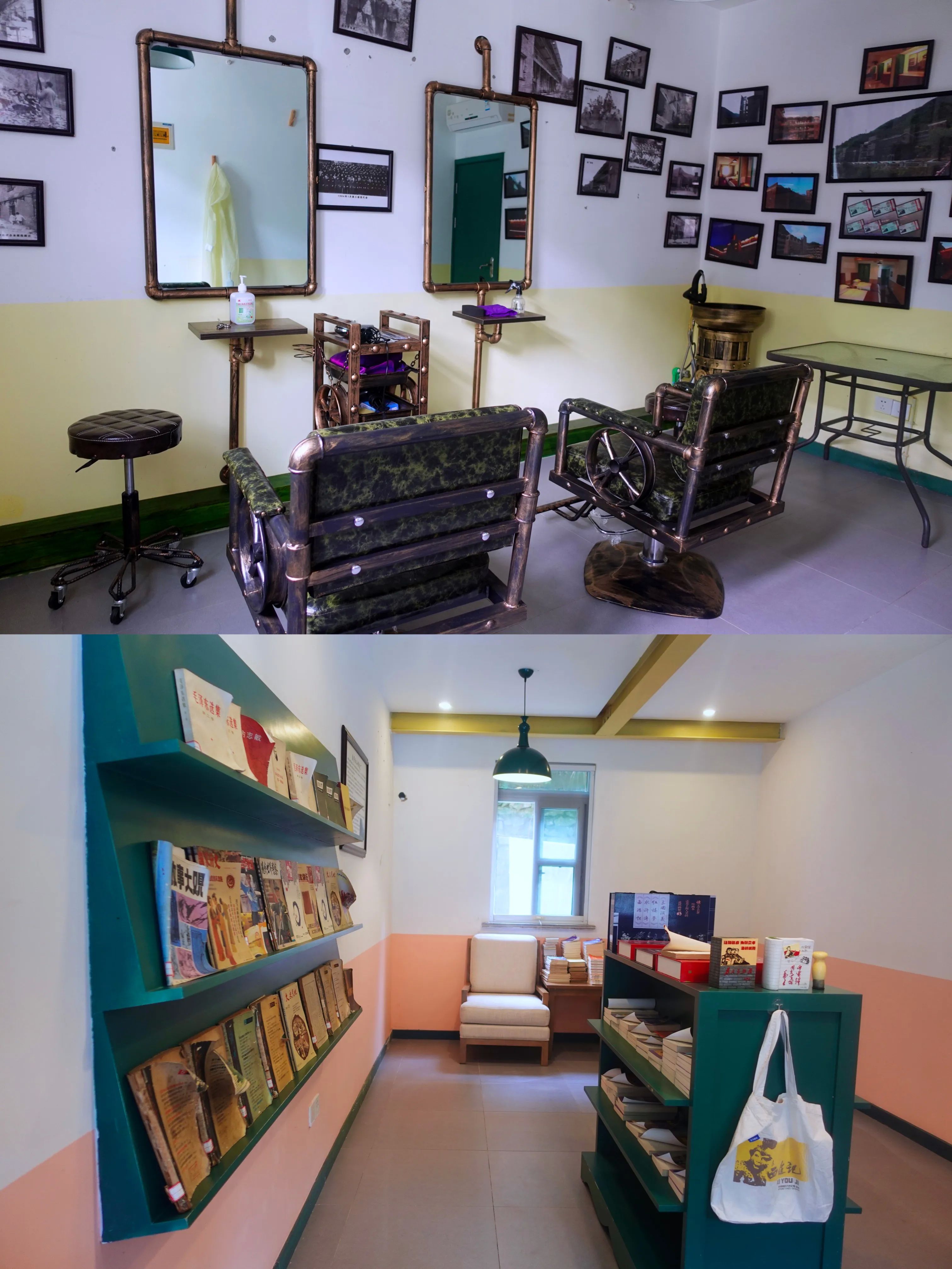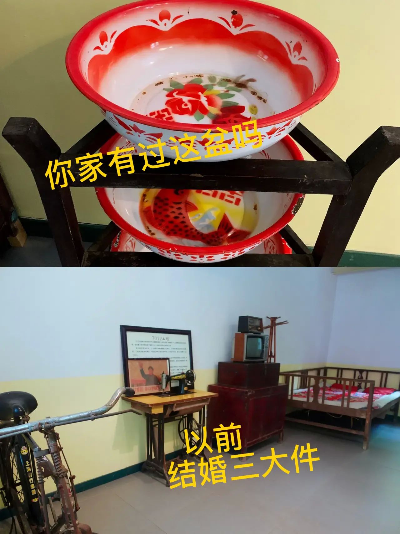 比如小镇的三线酒店,它是由三线建设时期的天星仪表厂原址改造而成,这历史够悠久厚重吧!据说房间装饰都是还原三线建设时期的风貌,不过房间内部我没去看,但在楼下展厅就能看到很多当时期的风貌,比如以前结婚的三大件:自行车,缝纫机,电视机![大笑]现在用这三大件还能娶到媳妇儿吗?大家留言讨论一下![我想静静]