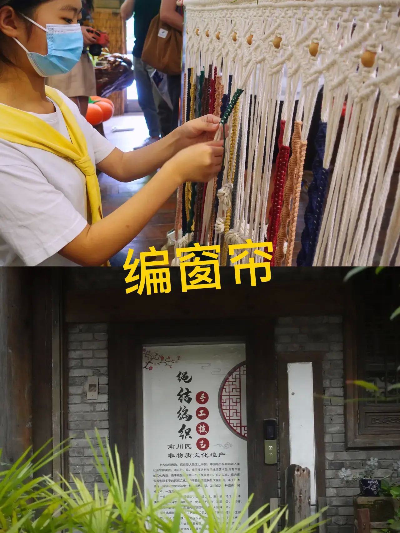 小镇上还有非遗,南川区非物质文化遗产——绳结编织,纯手工打造,窗帘,鞋子,香包啥的,都可以编织,重庆妹儿手巧得很!