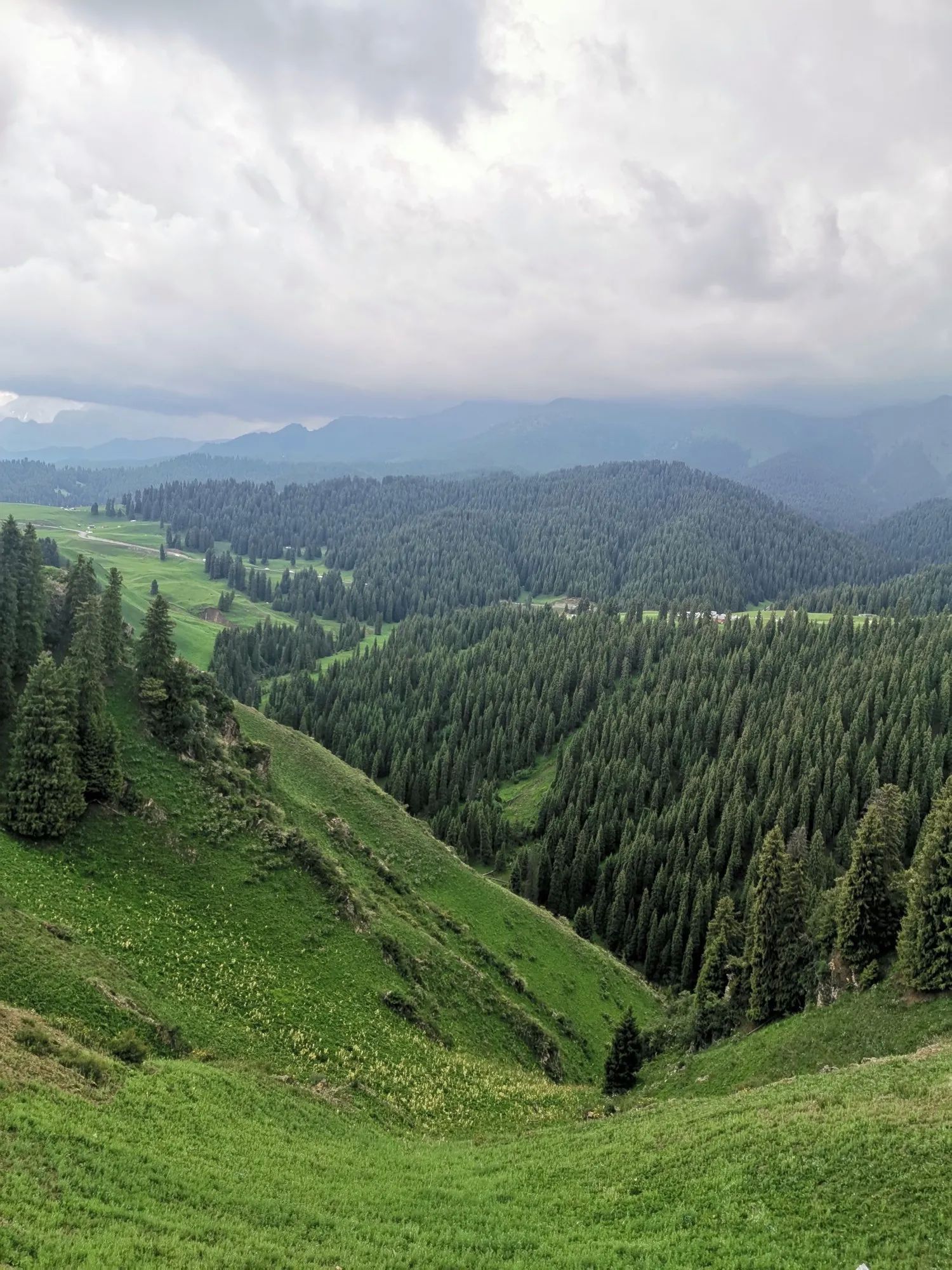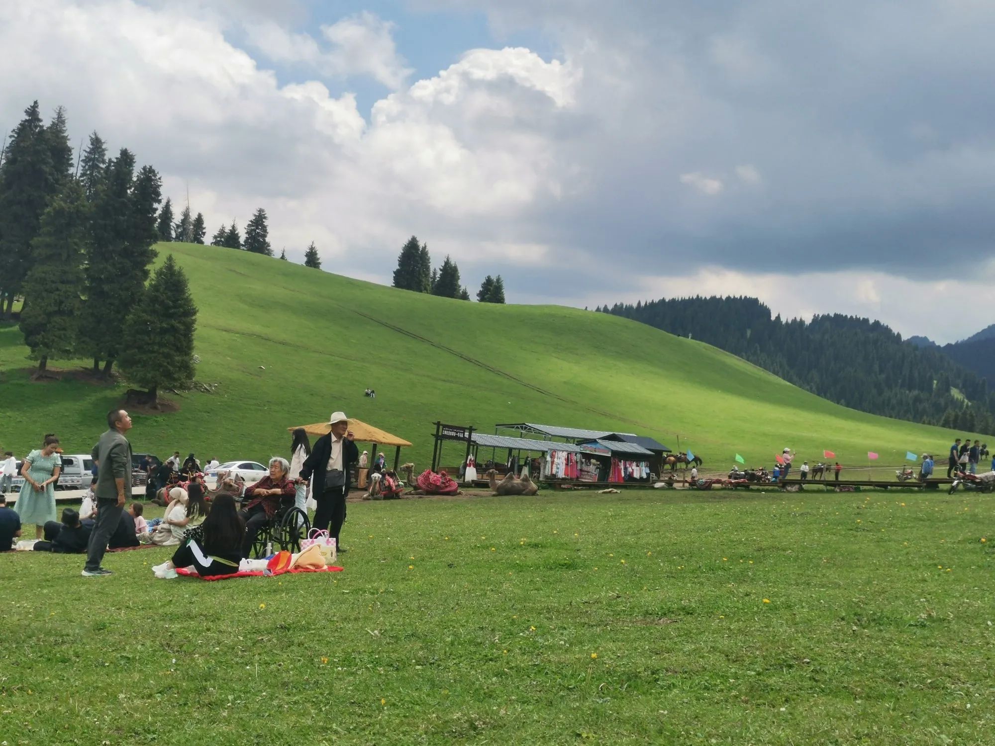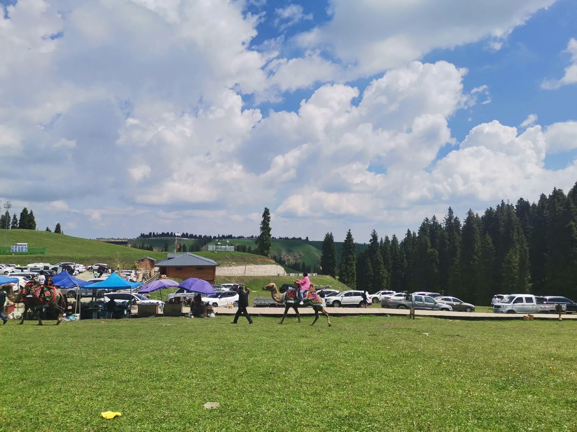 离开巴里坤,前往奇台县,宿奇台。第二天(6.18)前往本次自驾的最后一个景点,江布拉克。在新疆工作生活,一直听说江布拉克很美,怪坡很奇怪,居然都没有抽出时间去一趟,这次终于可以成行了。江布拉克景区很大,自驾是最好的选择,可以想停就停,想走就走。还没正式进入景区,就已经被那辽阔的绿色草原,高远的天空,谜一样的蓝天白云所陶醉。大美新疆!路边不少车辆和我们一样停下拍照,巡逻的交警过来提醒,还没进入景区,此处不许停车!于是心想,没到景区都这样好看了,景区一定美的不要不要的吧[大笑][大笑]。江布拉克景区是一个大环线,绕环线一圈,沿线有许多景点,有停车区,停下车可以观景,可以走进草原或峡谷,可以爬上山坡,一路上我们只是观景拍照,只在其中一个观景区来到草原上,铺了隔潮垫,买了奶疙瘩和手工酸奶,一边享用美食,一边静静的享受那一刻的安静,放松心情,融入大自然。看看蓝天,闻闻草香,听听风声,看着那些快乐的人们!感到特别的惬意和满足。到了怪坡,还没来得及体验一下骑车的感受,景区就下起了大雨,在雨稍微小点的时候,就赶紧驾车离开了。都说江布拉克是可以看到风吹麦浪的地方,就想,应该换个时节再来一次。在景区我脑海里总是想起一首歌的歌词,“我到过许多地方,最美的还是我们新疆”,的确,新疆真美!大美新疆,名副其实!