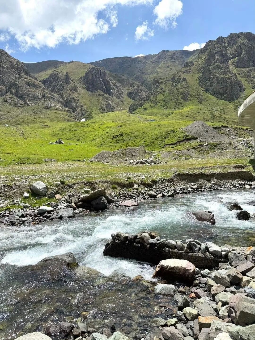 再提醒一下,去山区记得准备点零钱,经常没信号,手机支付用不了。虽然蔬菜少,但新疆的水果又脆又甜汁水足,一定要多吃。而且新疆和内地有时差,晚上9点吃晚饭是常态,随身带点零食,防止低血糖。路上遇到转场牧民,可以买点新鲜马奶尝尝,虽然味道酸涩,但喝完特别提神,据说还能治失眠。要是想拍照出片,白色、鹅黄色等亮色裙子很合适,再搭配牛仔外套和帽子,酷飒风轻松拿捏。