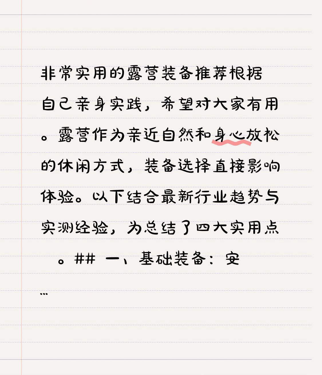 露营作为一种亲近自然、放松身心的休闲方式,装备的选择会直接影响露营体验。下面结合最新的行业趋势与实测经验,总结出四大实用要点。