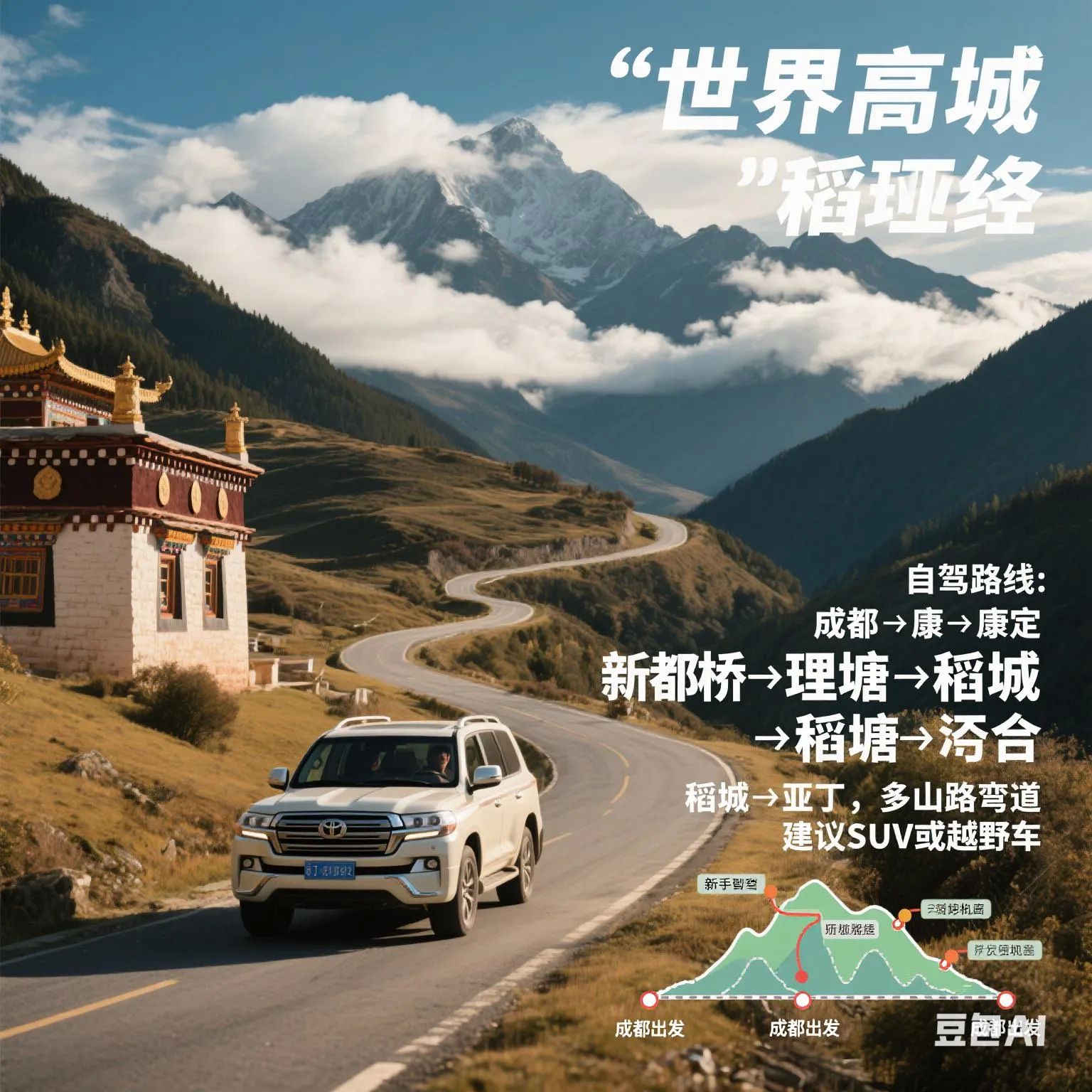 - **路线**:成都康定新都桥理塘稻城亚丁(约700公里)