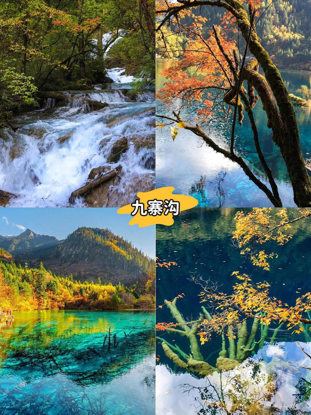 【九寨沟】:湖水碧绿如玉,倒映着皑皑雪山,大自然的鬼斧神工在这里展现得淋漓尽致,随便一拍都是大片。