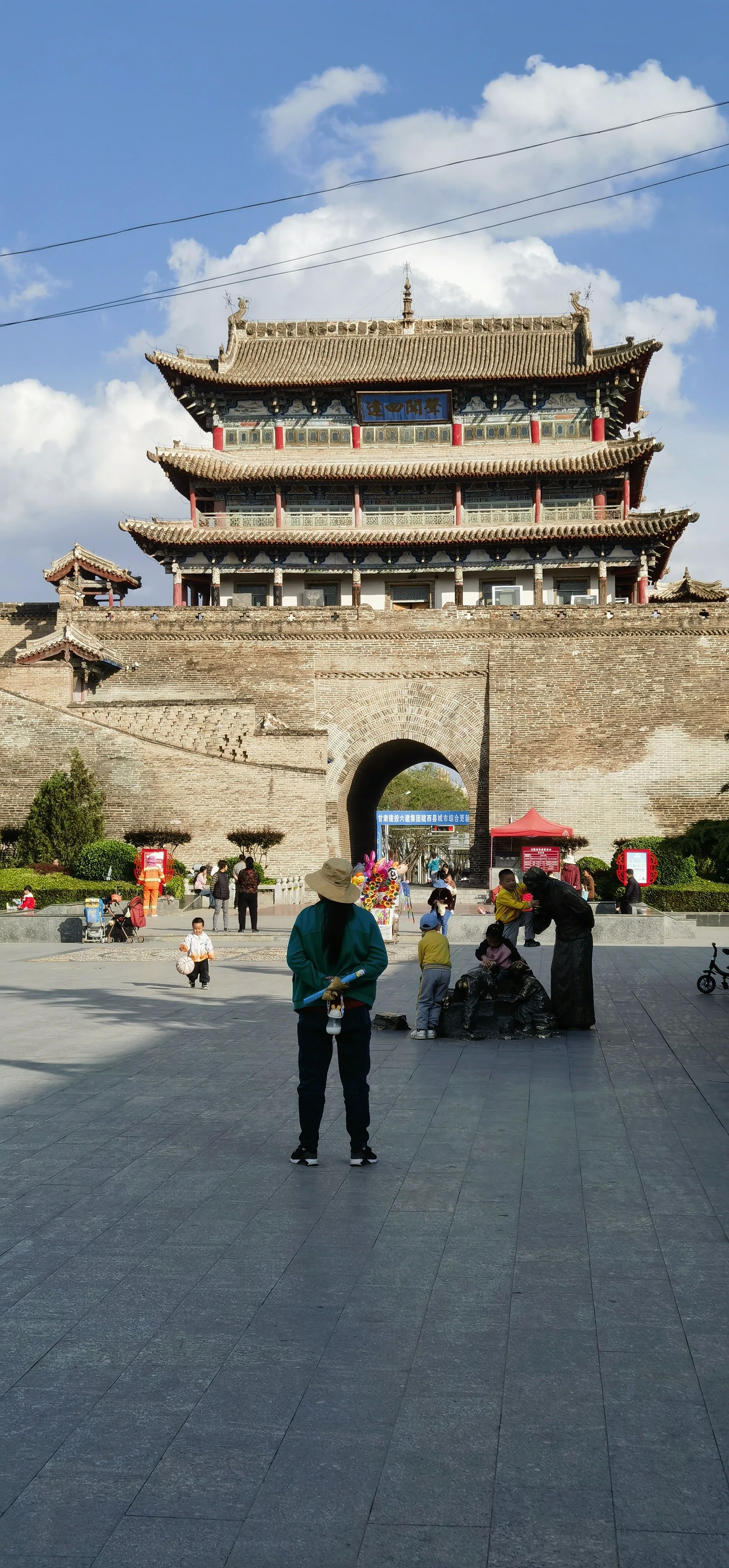 尽管我们走得慢,三点不到还是踏进了陇西县城。我设置的导航目标是陇西县,导来航去,竟然“导”到了县政府的大门上。这怎么行呢!我们只得先在街道上乱跑一气。后来,远远看见一个巨大的仿古城门楼子附近有“停车场”的字样,就将车开进去停放在了停车场。