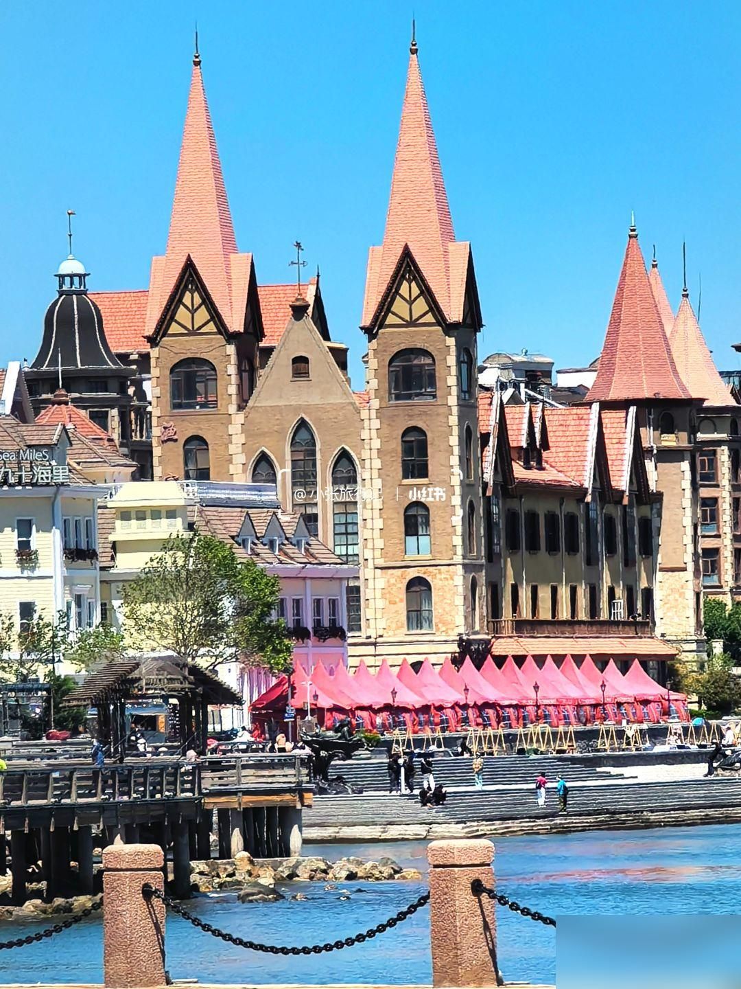 ️渔人码头千寻铁轨一定要去,靠海的建筑侧小布拉格。定位蓝天宾馆与汐岸城市温泉