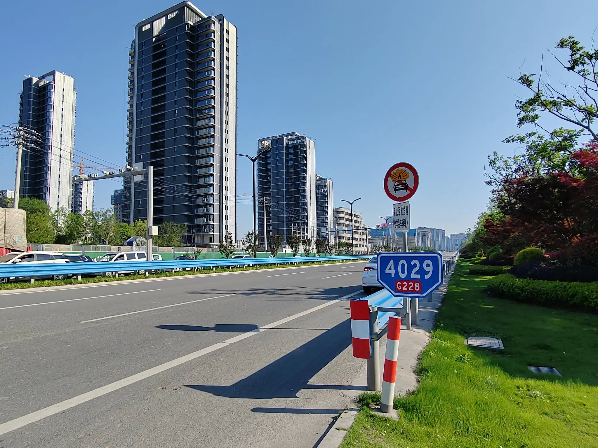 4、非常漂亮、干净的前湾新城。由于G228借道过杭州湾以后至慈溪余姚的公路还没有修通,我是从前湾经庵东镇走历崔线、中横线高架经过慈溪,再走胜陆高架到余姚陆埠镇 ,转古乍线去往宁波,这里就能看到G228的标识了。