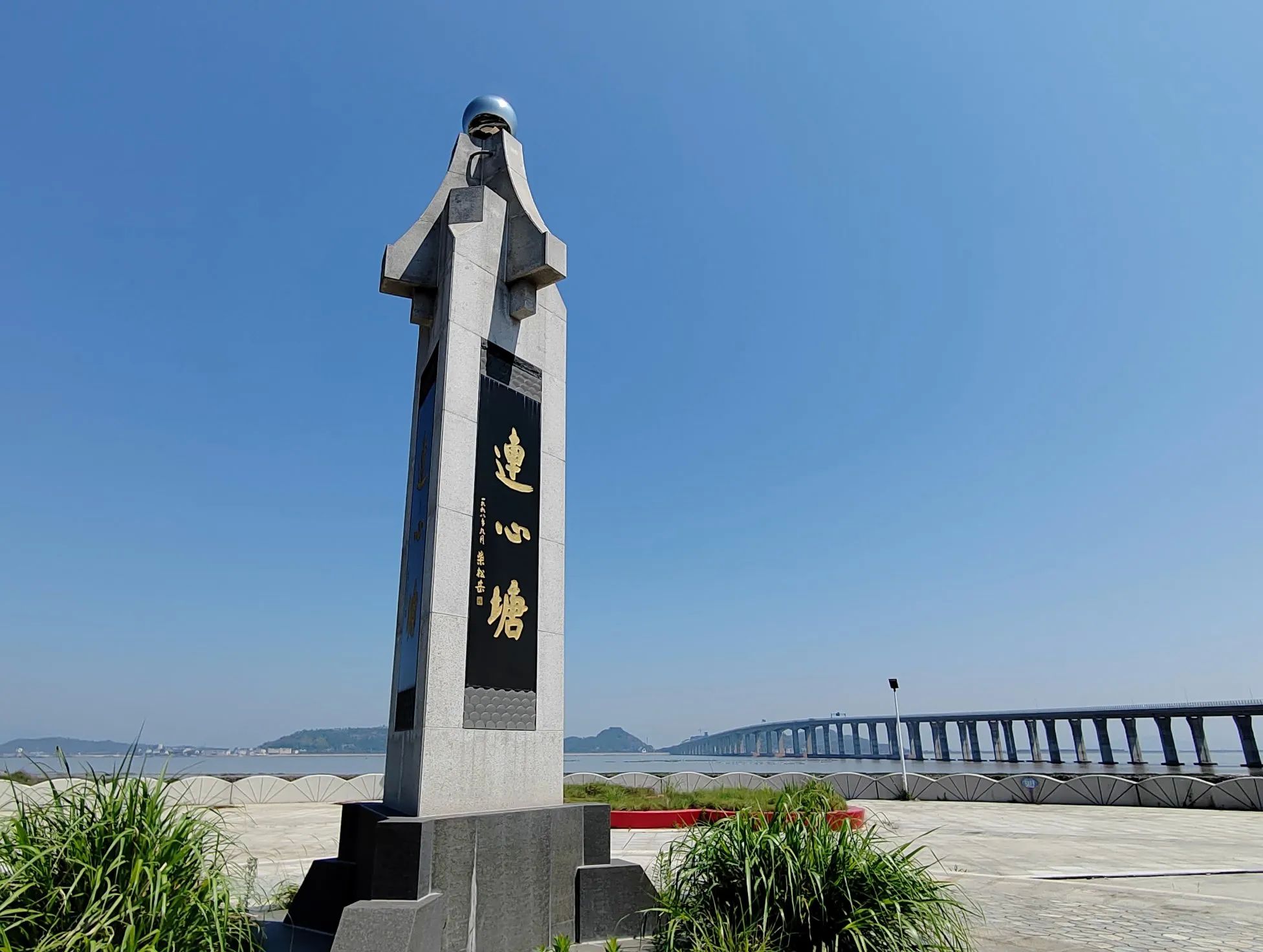 11、台州 三门县 龙潭村 K3841,海边的连心塘。远处的高架桥是G1523甬莞高速三门湾蛇蟠跨海大桥。