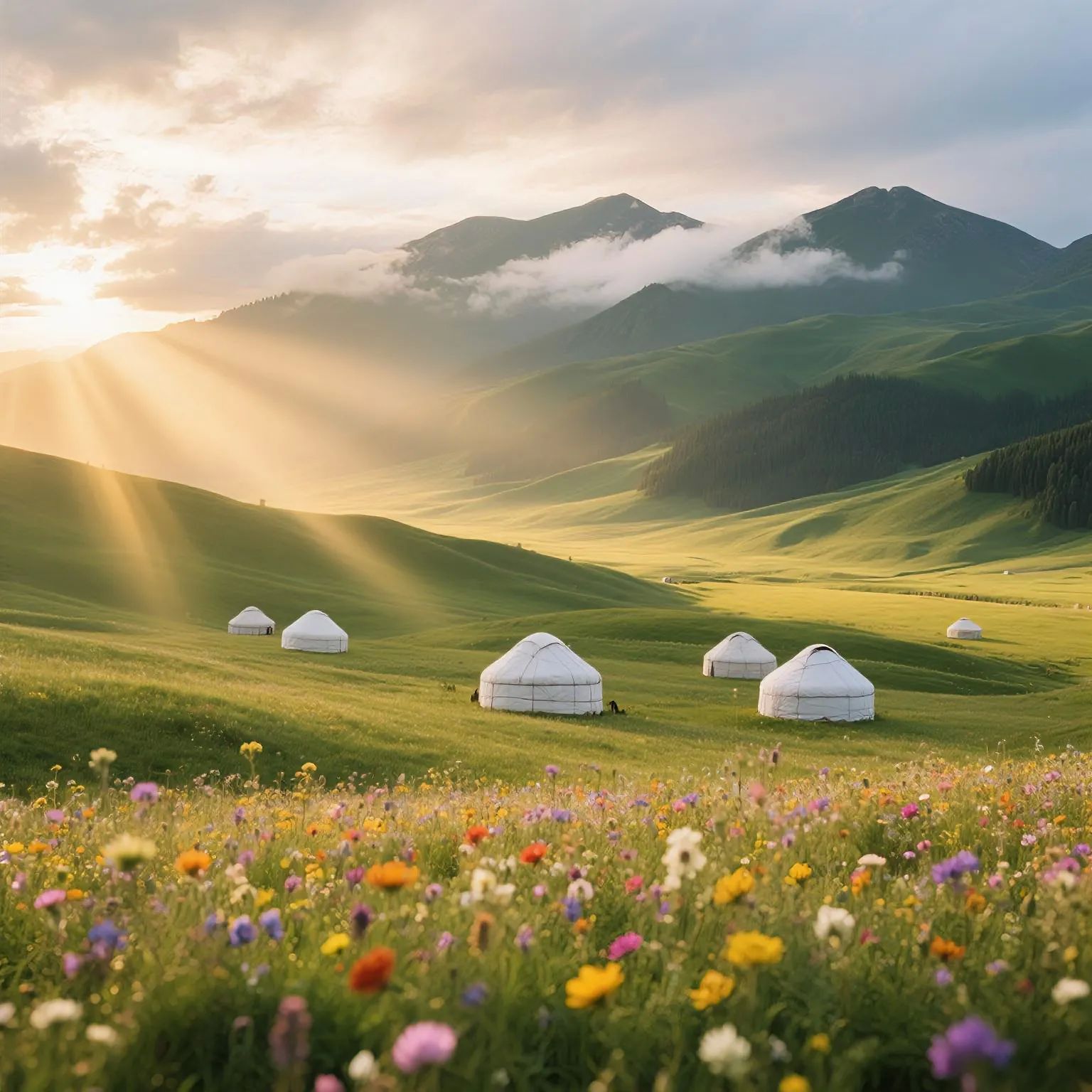 - 玩法:在雪山下的草原扎营,夜晚银河触手可及;租马骑行穿越花海,感受哈萨克牧民生活。