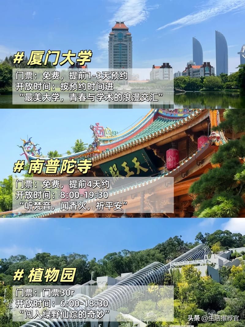 上午:参观南普陀寺(免费,需预约),登五老峰俯瞰厦大。