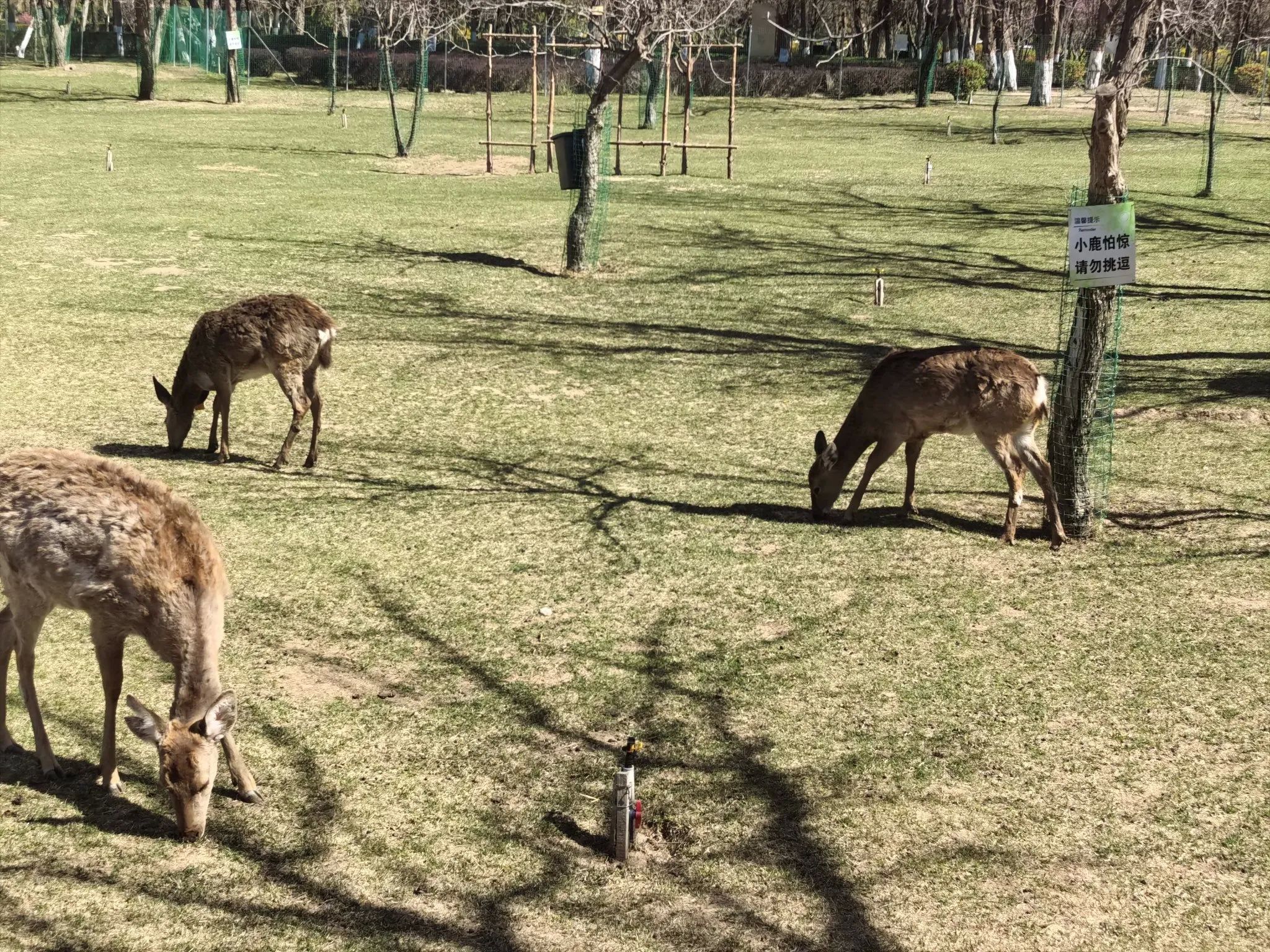 园区景色不错,园区虽然是以枣树为主,但也种了些梨树,桃树,白色的梨花,粉色的桃花把园区装扮的五颜六色,蜿蜒的河流也在园区内流淌,还有五六只可爱的梅花鹿在草都上嬉戏,见到人也不害怕,脑袋凑上来好像在向人要吃的东西。我忍不住摸摸他的脑袋,它很乖巧的让我摸,仿佛是个有灵性的小精灵。