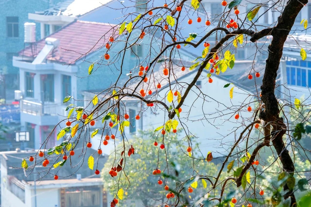 晚秋时节,沿着宁海森林温泉大道一路畅游深甽,放眼是蓝湛湛的天空 、红艳艳的 枫林,细看是黄澄澄的柿子、绿油油的藻荇,还有那一座座隐于山间、侧卧溪坑的村落,正是一幅徐徐展开的绝美人间画卷。