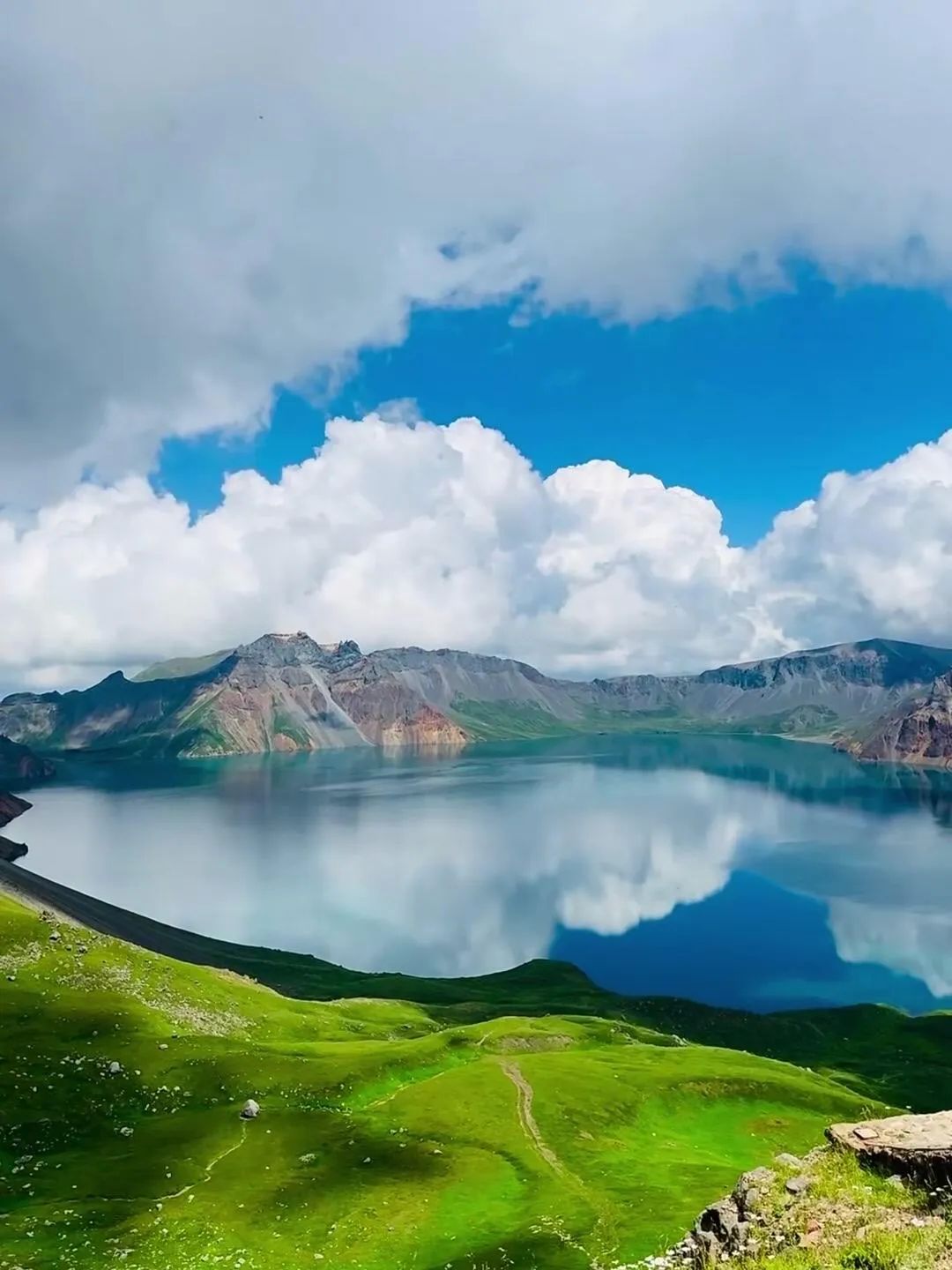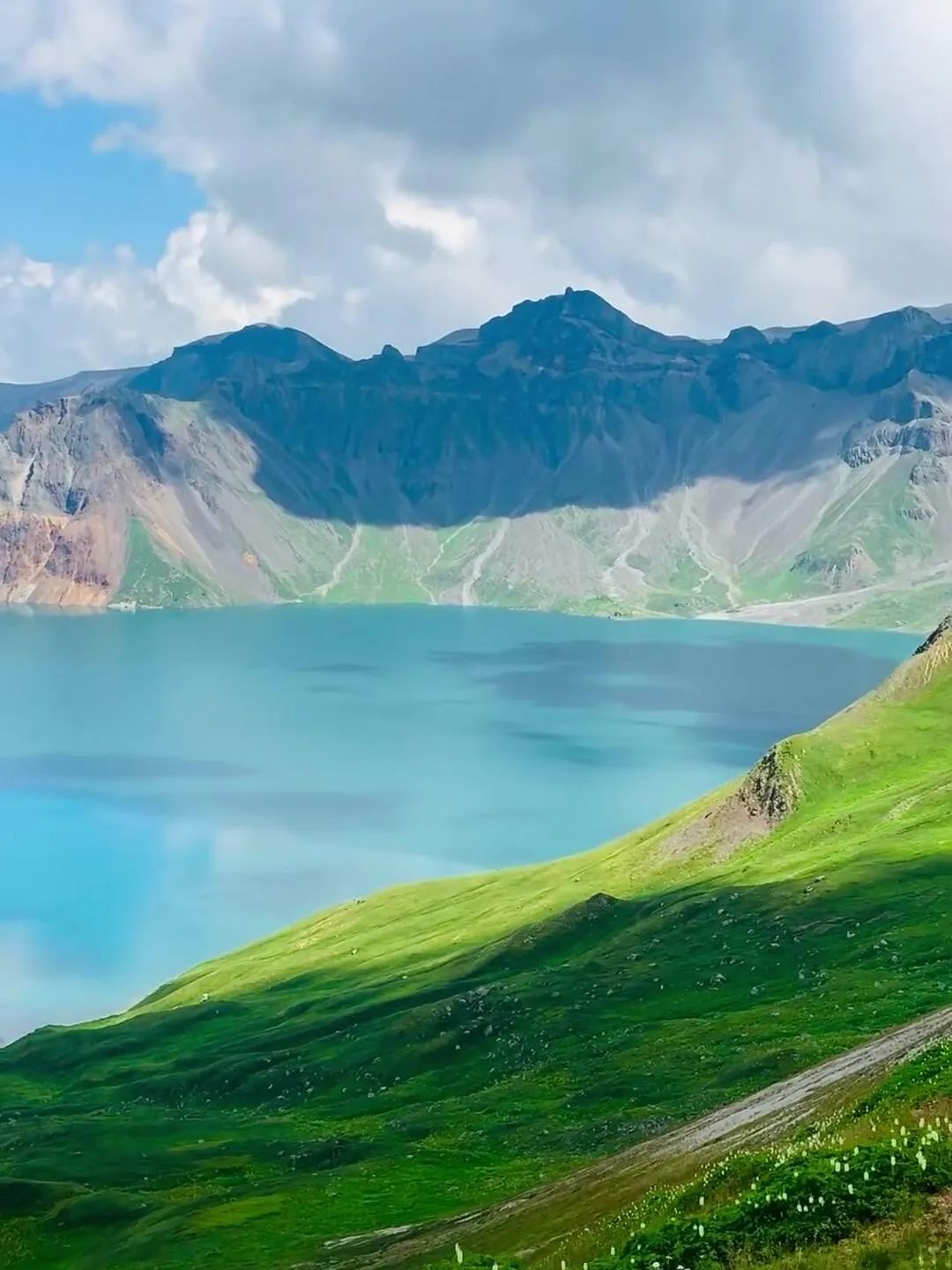 天池:6-10月才有的碧蓝秘境!乘越野车到北坡山顶,当云海散开露出天池全貌时,孩子惊呼到捂嘴——湖水蓝得像PS过,比冬天更震撼(Tips:提前查天气,晴天才能看到全貌哦~)