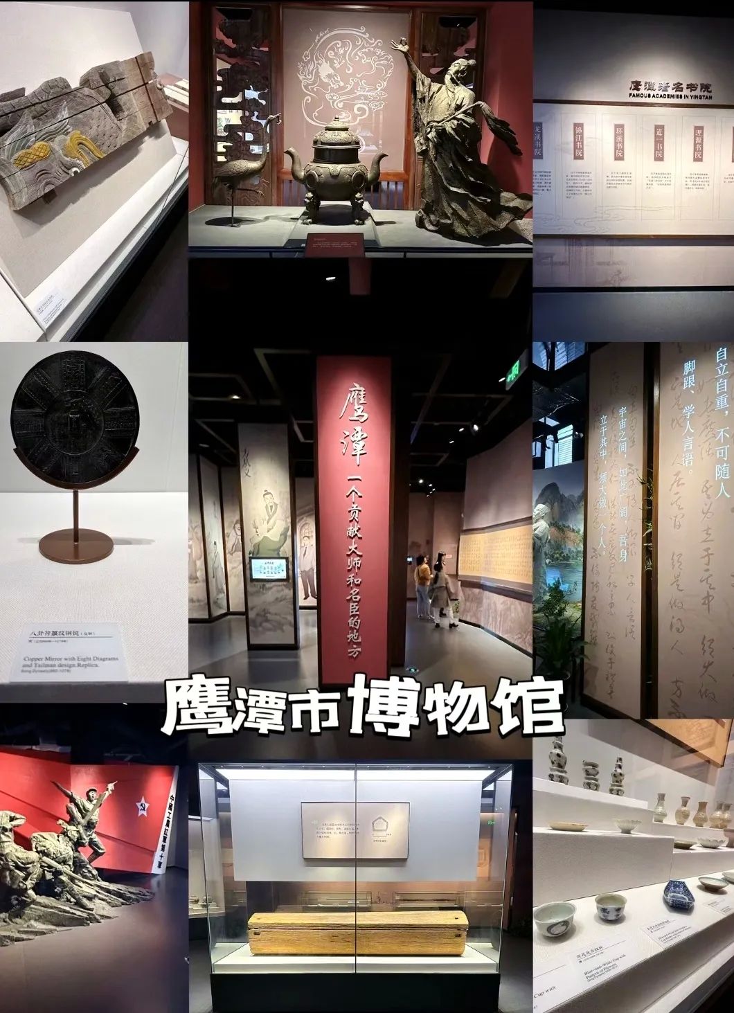 - 鹰潭市博物馆:免费开放,馆内藏品丰富,涵盖历史、民俗、艺术等多个领域,通过实物、图片、多媒体展示等方式,全面展现了鹰潭地区的历史变迁与文化传承。